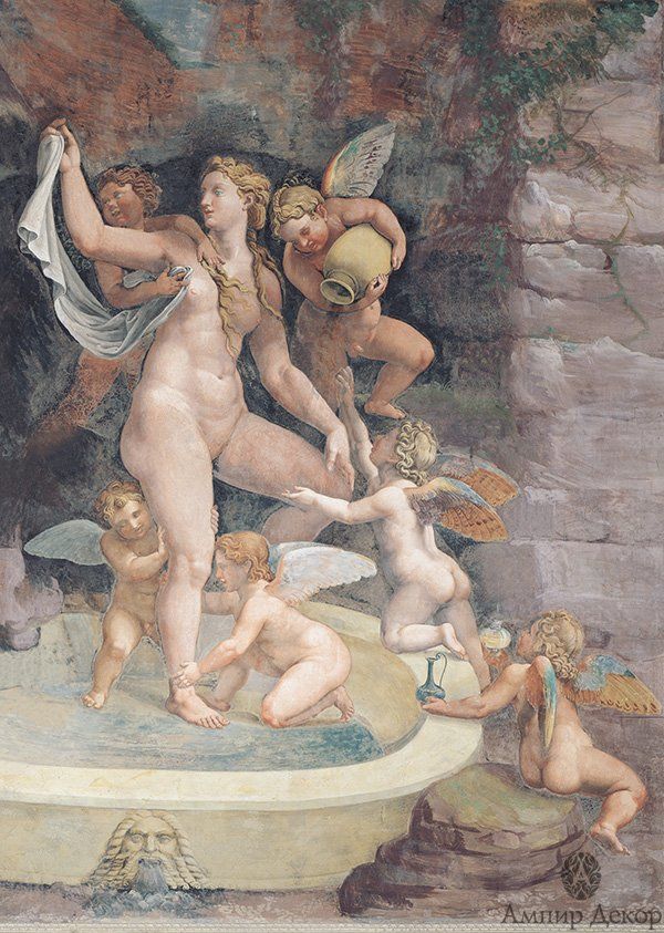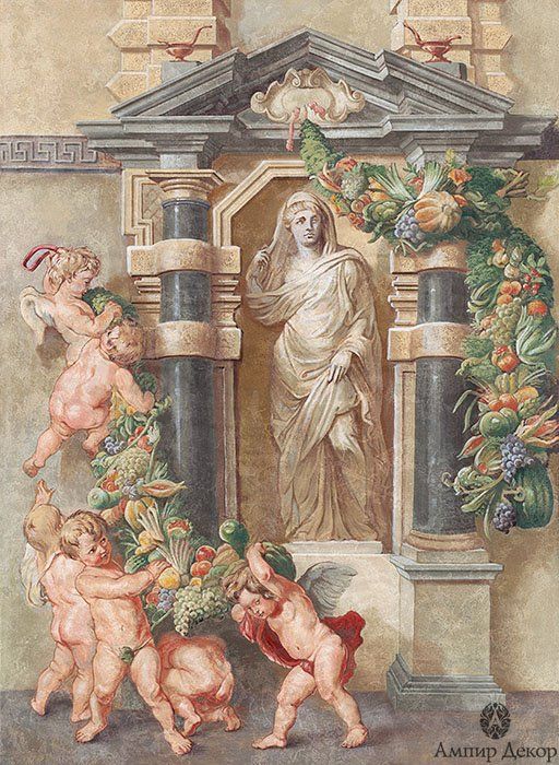 Фрески под брендом «Ampir Decor» воспроизводят шедевры итальянских мастеров различных эпох, производятся в Италии эксклюзивно для нашей компании. По размерам и цветовому решению изображения полностью соответствуют историческим прототипам.