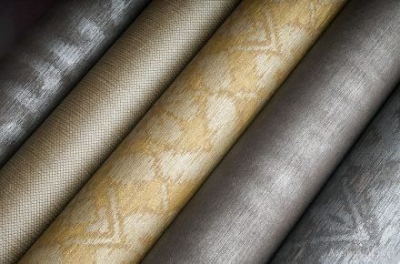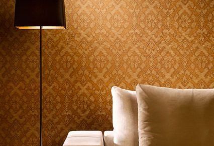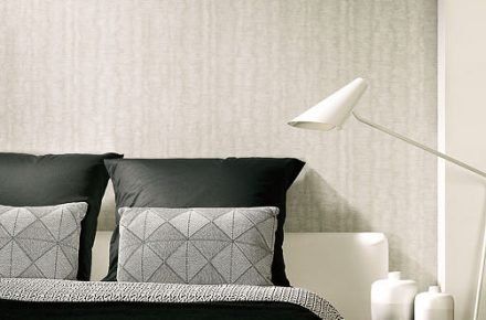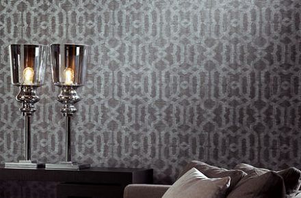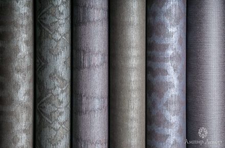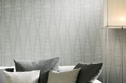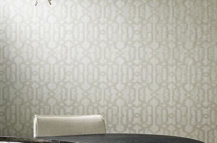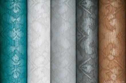 Стилизованный цветок гибискуса заключен в геометрические формы, благодаря которым рисунок выглядит, как старинный восточный орнамент. Нежный блеск придает ему ощущение современности, создавая удивительный контраст. Красивые волнистые линии напоминают огромные капли, стекающие по стене. Если присмотреться к дизайну, можно увидеть всю ту же ребристую фактуру, которая добавляет этим обоям эффект плетения. Декоративный геометрический дизайн решетки смотрится строго и, в то же время, изящно и неброско благодаря размытому «акварельному» рисунку. Такой же «акварелью» нанесены на полотно тонкие полосы. Крупные дизайны дополняет плейн с сеткой-паутинкой, напоминающей россыпи алмазов, и обои с эффектом меланжевой ткани.