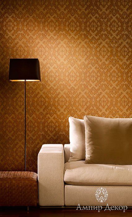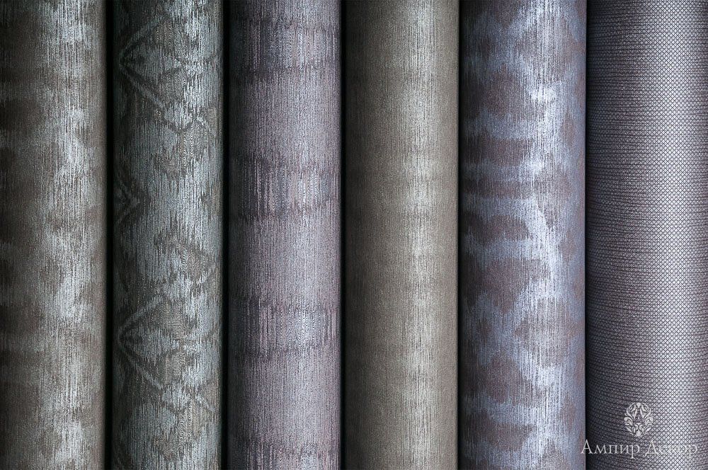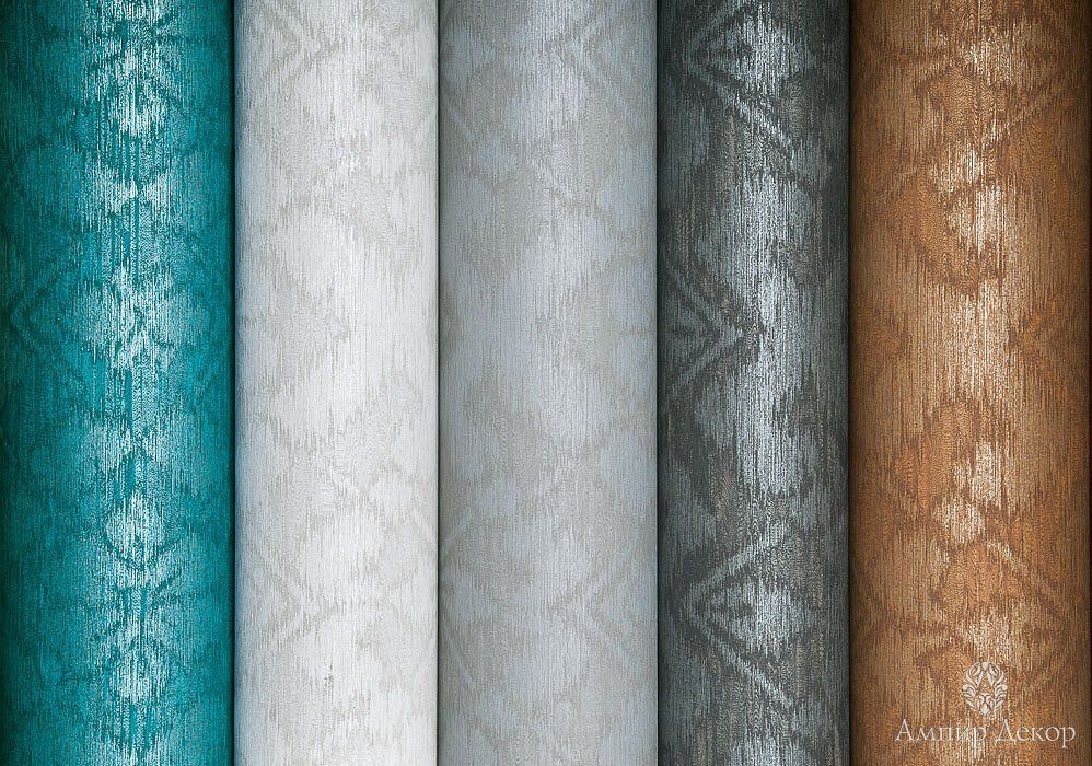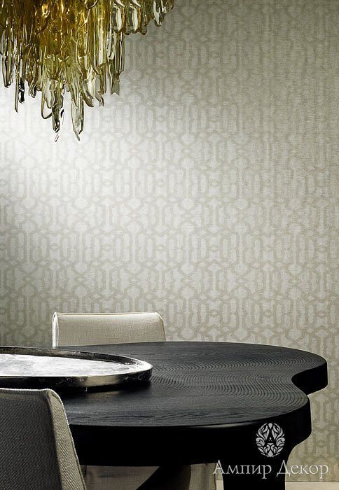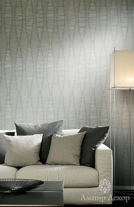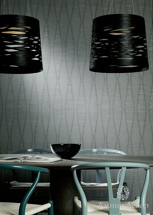 Стилизованный цветок гибискуса заключен в геометрические формы, благодаря которым рисунок выглядит, как старинный восточный орнамент. Нежный блеск придает ему ощущение современности, создавая удивительный контраст. Красивые волнистые линии напоминают огромные капли, стекающие по стене. Если присмотреться к дизайну, можно увидеть всю ту же ребристую фактуру, которая добавляет этим обоям эффект плетения. Декоративный геометрический дизайн решетки смотрится строго и, в то же время, изящно и неброско благодаря размытому «акварельному» рисунку. Такой же «акварелью» нанесены на полотно тонкие полосы. Крупные дизайны дополняет плейн с сеткой-паутинкой, напоминающей россыпи алмазов, и обои с эффектом меланжевой ткани.