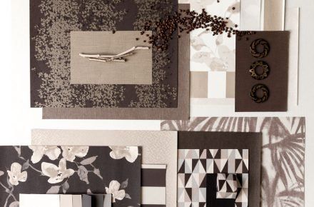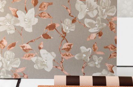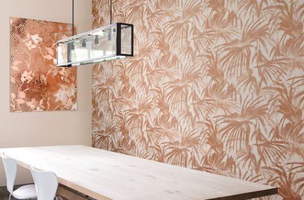 Каталог разделен на несколько тем, которые прекрасно сочетаются друг с другом в одном интерьере. Геометрические орнаменты представлены мелким графическим узором, четким орнаментом из треугольников и различными вариантами полос с имитацией песка и эффектом жемчуга. Растительная тематика нашла свое отражение в цветочных дизайнах на фонах с эффектом песка, пикселизованных пальмовых листьях, узорах из веточек. Также в каталоге представлены цифровые панели с растительными мотивами. Мелкие точки на флизелине придают рисунку дополнительное измерение. Панели могут отлично сочетаться с другими дизайнами из коллекции или использоваться отдельно.