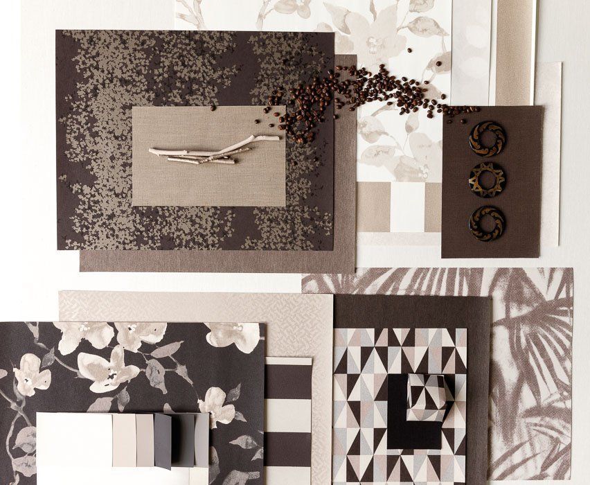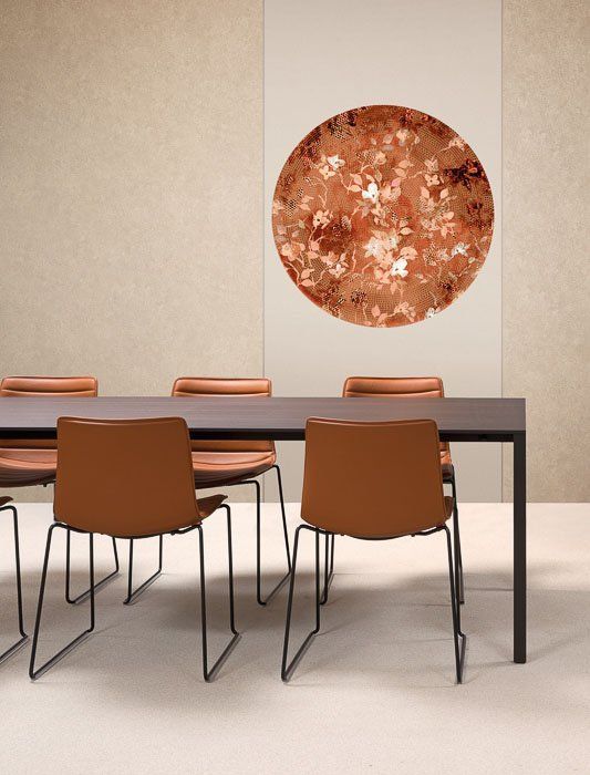 Каталог разделен на несколько тем, которые прекрасно сочетаются друг с другом в одном интерьере. Геометрические орнаменты представлены мелким графическим узором, четким орнаментом из треугольников и различными вариантами полос с имитацией песка и эффектом жемчуга. Растительная тематика нашла свое отражение в цветочных дизайнах на фонах с эффектом песка, пикселизованных пальмовых листьях, узорах из веточек. Также в каталоге представлены цифровые панели с растительными мотивами. Мелкие точки на флизелине придают рисунку дополнительное измерение. Панели могут отлично сочетаться с другими дизайнами из коллекции или использоваться отдельно.