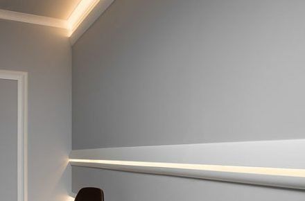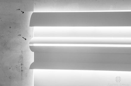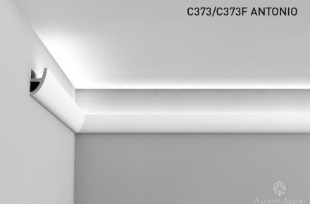 Два карниза из коллекции Antonio различной высоты С373 и С374 позволяют создавать уникальные оптические эффекты благодаря возможности различного направления подсветки. Теперь используя светодиоды, не нужно покрывать внутреннюю часть карниза фольгой, так как длинномеры уже покрыты специальной светоотражающей пленкой. Различные комбинации карнизов позволяют направлять лучи света и создавать дизайнерское пространство. Эти артикулы великолепно сочетаются с новым карнизом С991 из коллекции Luxxus, эффектно отражающим свет, а также имеют гибкие аналоги С373F и С374F, открывая декораторам безграничные возможности в декоре интерьера.