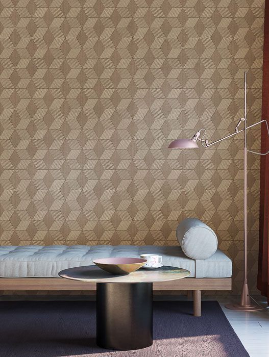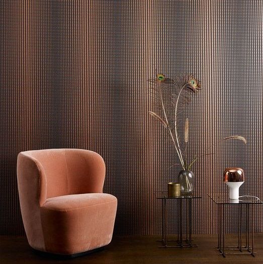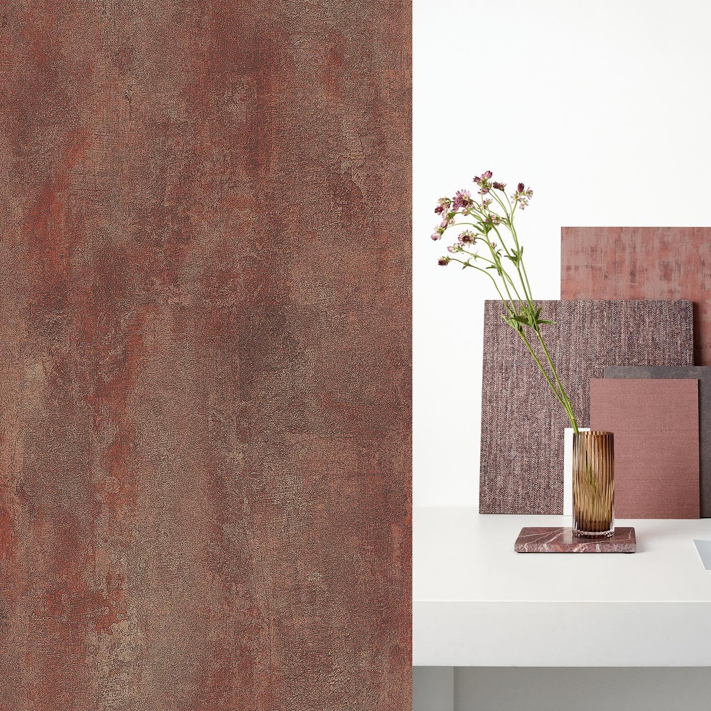 Каталог Khromatic — фоновые обои, имитирующие лен, штукатурку и металл в оттенках терракоты, бронзы и латуни.