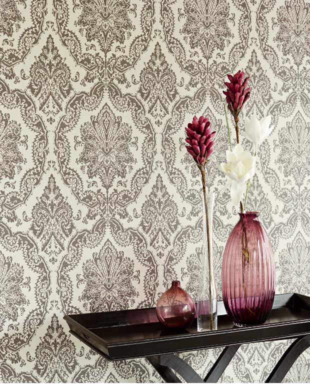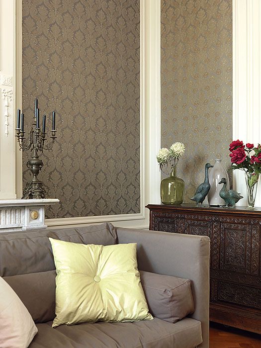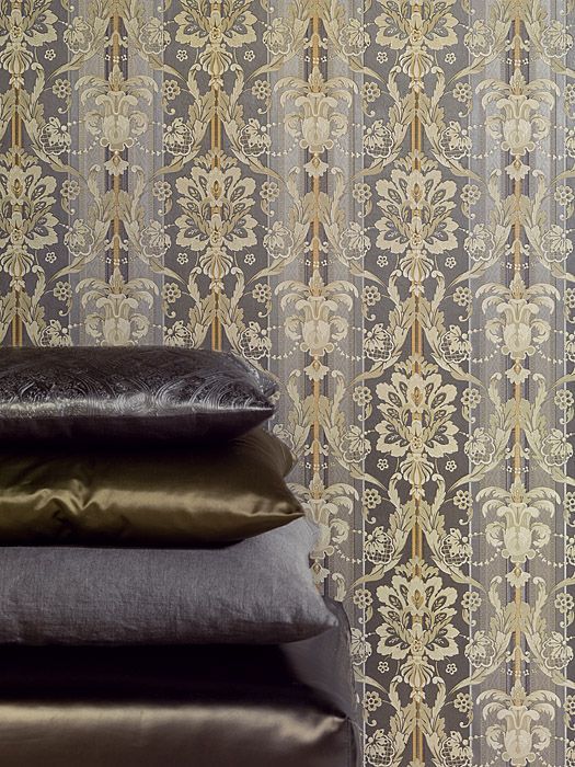 Изысканная и нестареющая классика — дамаски, пышные цветочные вазоны, лавровые венки. Фоновые обои, созданные по аналогии с жатой тафтой, будто покрывают стены переливающейся тканью. В коллекции представлено разнообразие теплых классических оттенков: бежевого, зеленого, фиолетового, лилового, шоколадного, бордового, персикового и других.