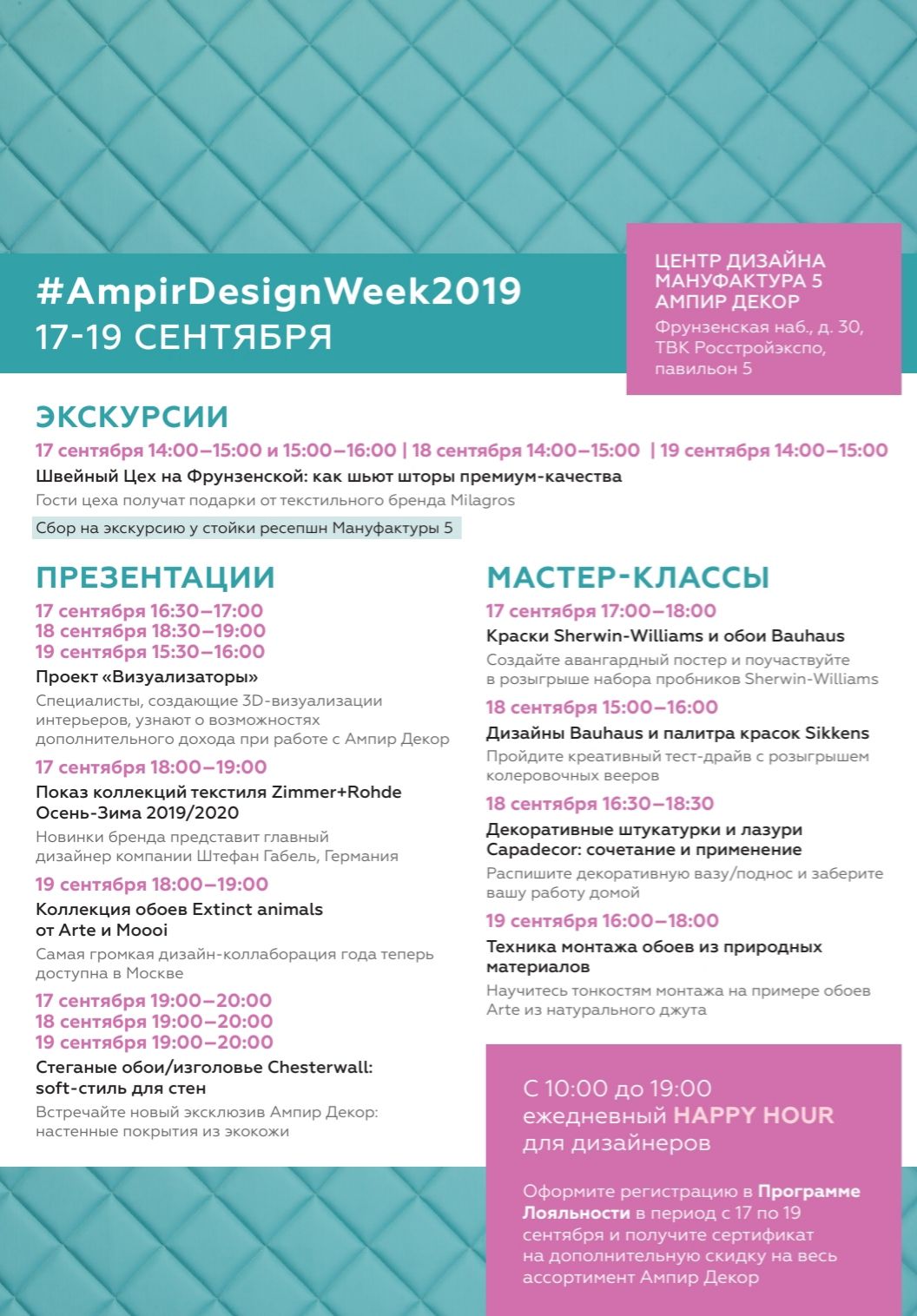 Дизайнеры, оформившие регистрацию в Программе Лояльности в период с 17 по 19 сентября, получат сертификат на дополнительную скидку на весь ассортимент Ампир Декор.