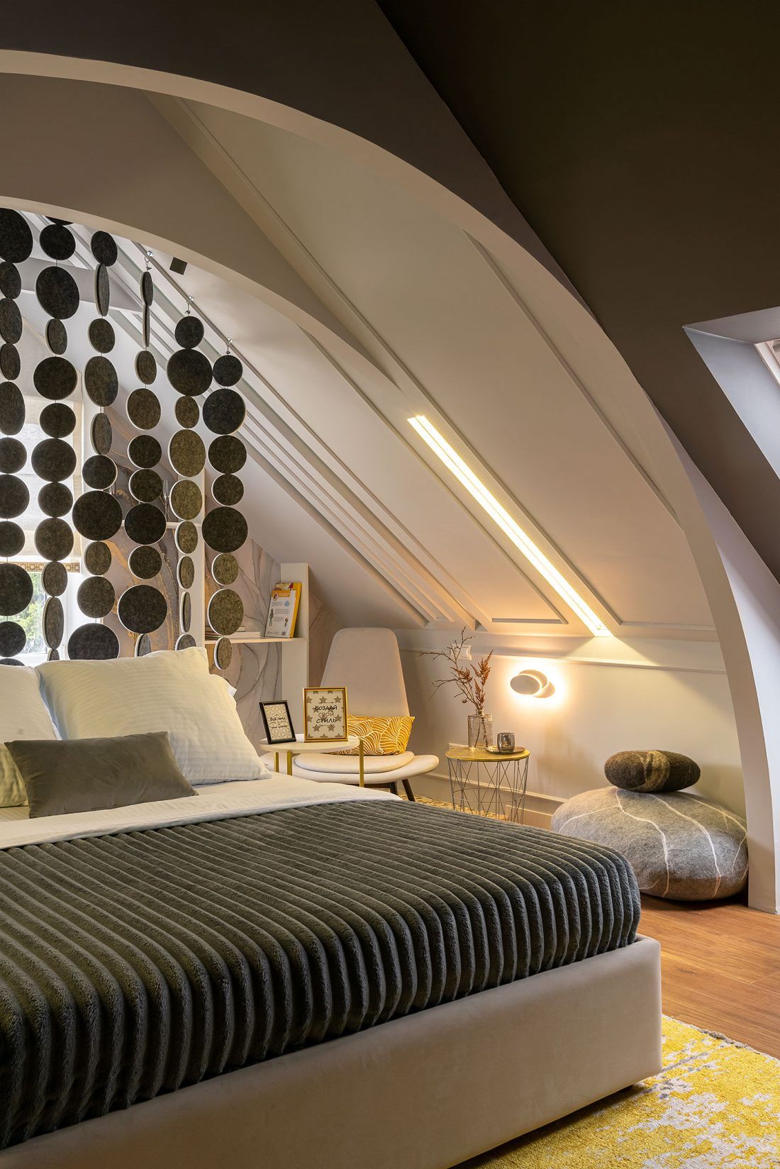 Дизайнер Оксана Плешкова обустроила небольшую мансарду. Безжизненное пространство удалось преобразовать в уютную спальню с различными зонами: спальное место, гардеробная, место…