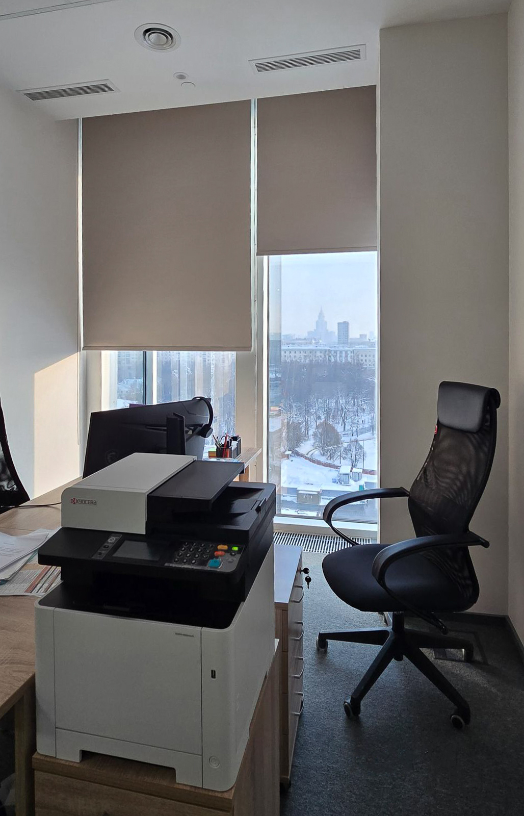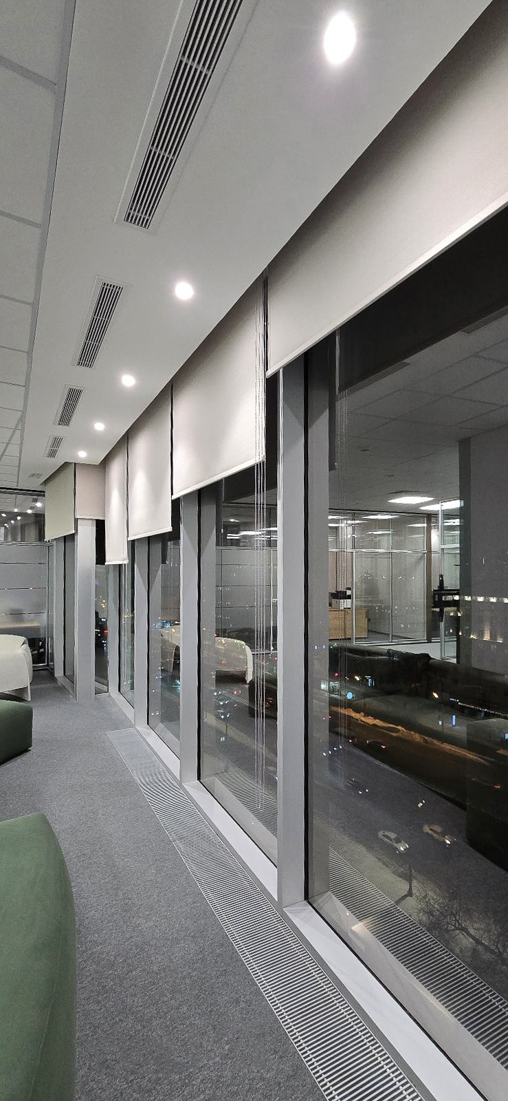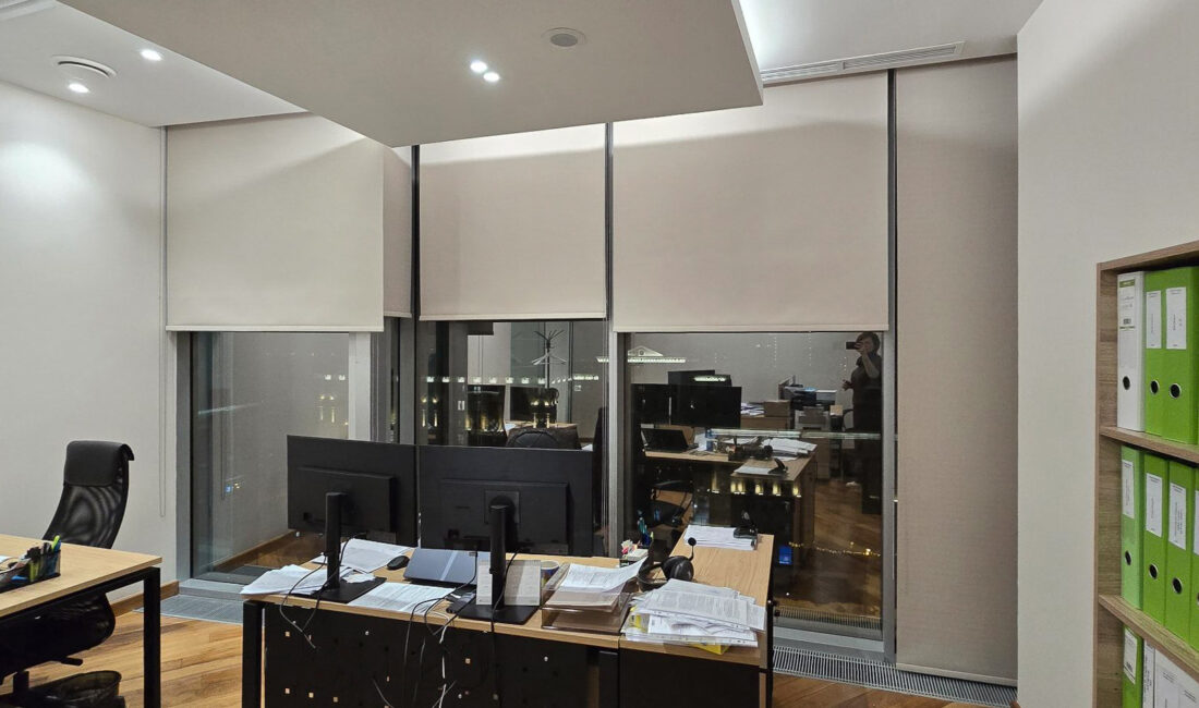 За каждым безупречным проектом скрывается своя история — история борьбы с неожиданностями, поиска решений и маленьких побед. Наш дизайнер по текстилю Ольга Градусова рассказывает как устанавливали 43 рулонные шторы блэкаут в офисе с… весьма характерным потолком.