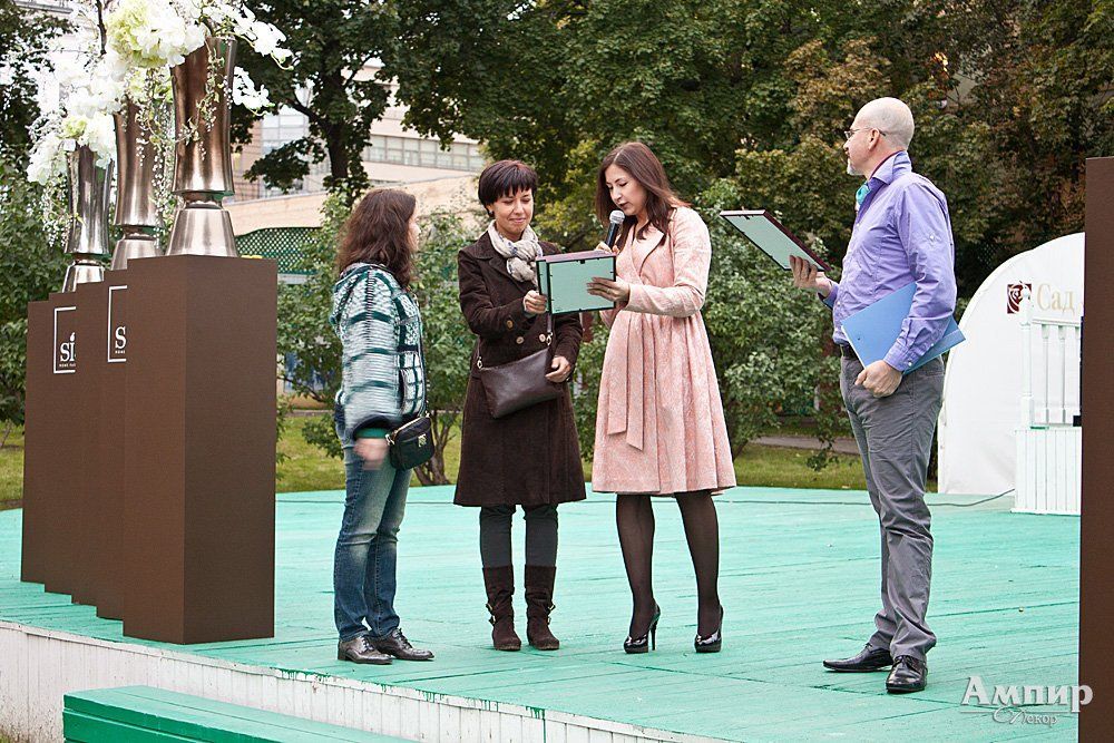 Вечер порадовал обилием приятных сюрпризов для виновников торжества, многим из которых были вручены дипломы и подарки от партнеров мероприятия. Компания «Ампир-Декор» объявила о начале нового конкурса «Вдохновение», подарила создателям шатра Ольге Тищенко и Марине Григорян сертификаты на приобретение материалов «Ампир-Декор», а также наградила одного из своих лучших менеджеров Алину Сычеву и дизайнера, верного продукции и стилю компании, Эдуарда Туманяна поездкой в Лондон на фабрику Designers Guild. Уже в конце сентября их ждет насыщенная программа в одном из самых модных городов мира.