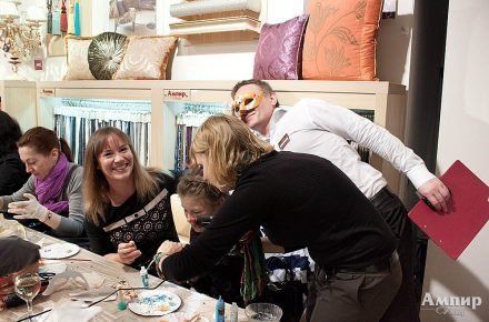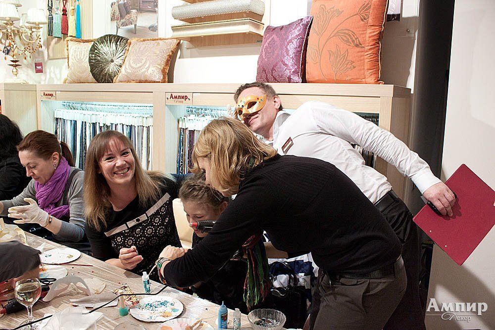Гостей встречали сотрудники салона и загадочный арлекин. Особенностью праздника стал и дресс-код: «яркие краски как цвета венецианской маски», поэтому салон на один вечер превратился в подобие венецианского карнавала, главными в котором, были, конечно же, радостные улыбки его участников. Гости могли дополнить свой наряд самостоятельно сделанной венецианской маской из макарон, изготовлению которой весь вечер обучали специалисты журнала «Formula Рукоделия» на мастер-классе. Дизайнеров баловали итальянскими блюдами и винами, а эффектная пара артистов оригинального жанра развлекала их красивым номером с цирковыми элементами, создавая настроение.
