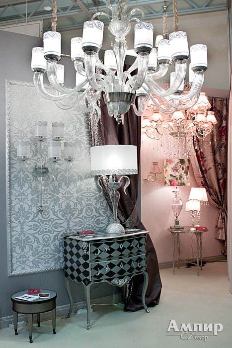 На стенде фабрики Il Paralime Marina было создано 6 интерьерных композиций, каждая из которых представляла собой эффектное сочетание светильников, обоев, тканей и лепного декора, мастерски подобранных специалистами «Ампир-Декор». «Такой дизайнерский ход в оформлении стенда был придуман для того, чтобы как можно полнее представить всю гамму моделей светильников, производимых фабрикой Il Paralume Marina от классики до современности.