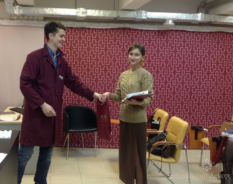 В учебном классе «Ампир Декор» прошли мастер-классы по монтажу лепного декора и настенных покрытий для учеников школы «Детали». Специалисты компании прочитали лекцию по товароведению, уделив внимание разнообразию настенных обоев «Ампир Декор», материалам, использующимся для создания обоев, а также технологическим особенностям полиуретана и дюрополимера и ассортиментной линейке лепного декора ORAC DECOR.