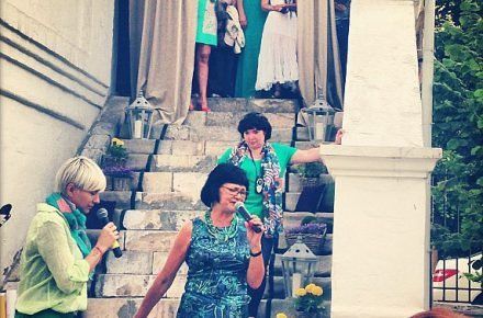 Не обошлось и без выставочных проектов выпускников Школы. Новоиспеченные дизайнеры и декораторы подготовили к мероприятию художественные композиции в доме и в саду специально для приема гостей. На вечере также состоялась презентация книги соучредителей Школы Вероники Блумгрен и Татьяны Роговой «Дача».