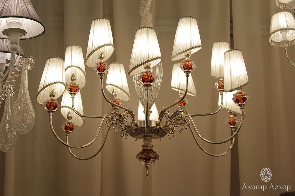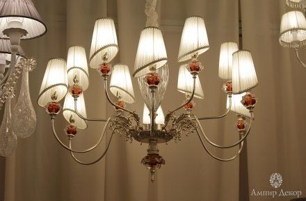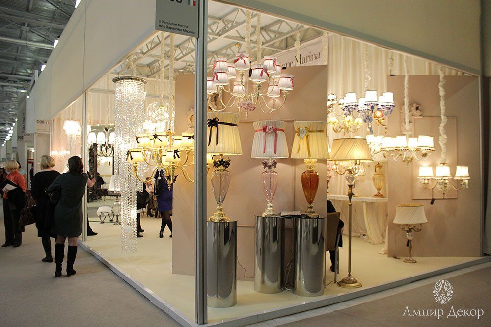 Наш партнер — итальянская фабрика Il Paralume Marina — очаровала гостей выставки нежными, утонченными светильниками в своем неповторимом стиле — с мягкими формами и линиями ар-деко. Ее новые модели люстр изобиловали романтическими декоративными элементами: лентами, тесьмой и керамическими розами на абажурах из воздушного шелка и плиссированной органзы, бабочками на сверкающих хрустальных каскадах, ассиметричными формами, затейливыми бантами на ножках торшеров, обилием мягких пастельных оттенков для создания мягкого рассеянного света.