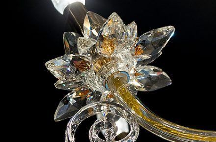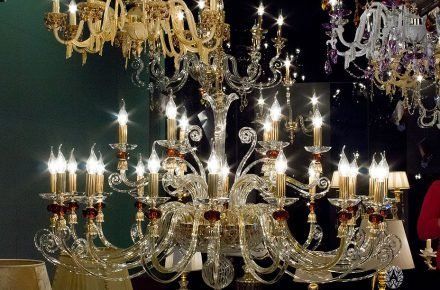 Посетители выставки смогли увидеть роскошные люстры, торшеры и бра, украшенные фарфоровыми цветами, а также очаровательные светильники из традиционных материалов: хрусталя, металлов и муранского стекла.
