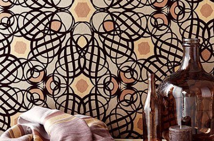 Для создания новых уникальных дизайнов Eijffinger вновь использует лак, фольгу, глиттер и флок. Сложные крупные дамаски, будто бы сошедшие с дорогих восточных тканей, выполнены из флока или с использованием блестящих чернил. Блестящую ткань с крупным плетением напоминают и плейны, которые могут стать самостоятельным дизайном. Встречается и флористика: очаровательные цветы из прозрачного глиттера или пикселизованные цветочные панно из радужной фольги. О восточных мозаиках напоминает удивительный дизайн из матовых и сияющих звезд, а об арабских плитках – выполненные глиттером квадраты или флоковые круги. Настоящим талисманом интерьера станет великолепный восточный дизайн, напоминающий роспись хной. Затейливые узоры погружают нас в мир волшебства, красоты и восточных таинств. Коллекцию дополняют различные полосы и плейны.