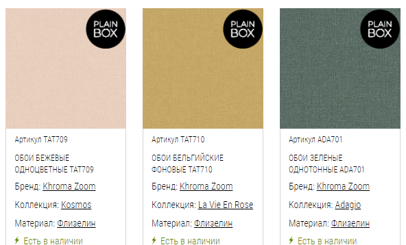 Артикулы, участвующие в акции, помечены значком «PLAINBOX».