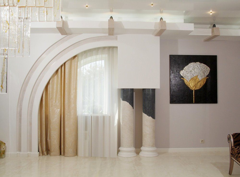 Проект «Современное звучание ар-деко»,  участвовавший в конкурсе «Ампир Декор» и Pinwin «Лепной декор в современном интерьере»: интерьер трехуровневого коттеджа в Новой Москве выполнен в стиле ар-деко. Большое пространство гостиной разделено на несколько функциональных зон и декорировано колоннами Orac Decor K 1102 и базами К 1152. Кронштейны и декоративные шишки из гипса выполнены по эскизам архитектора. Также по эскизам архитектора итальянские мастера выполнили стеклянные шторы в расширенных дверных проемах.