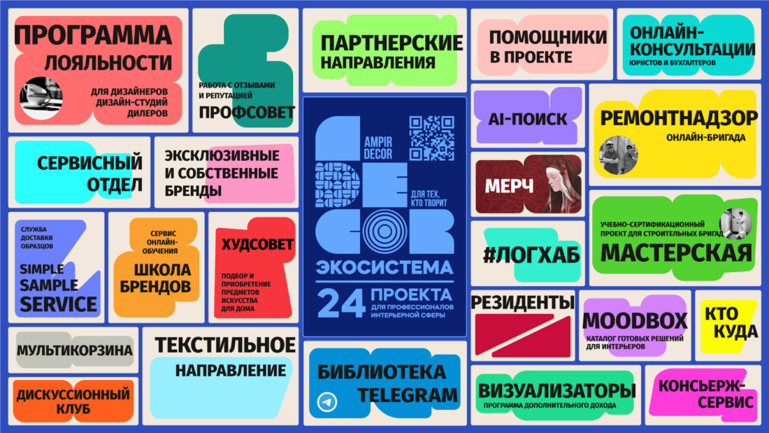 В эту среду входят дизайн‑центры в Москве и Санкт‑Петербурге, где можно работать с материалами и проводить встречи; помощники в проекте — команда специалистов, которая комплексно сопровождает заказчиков и дизайнеров на всех этапах работы и берёт на себя решение широкого круга задач с учётом особенностей каждого проекта; сервис доставки образцов, помогающий принимать решения не только «по картинке»; обучающий портал и мастер‑классы о брендах и технологиях для дизайнеров и бригад; швейный цех и монтажные службы, которые берут на себя текстильный блок проектов. Отдельно стоит сервис «Ремонтнадзор» — канал оперативной видеосвязи мастеров и прорабов с технологами «Ампир Декор», когда возникающие на объекте вопросы по материалам и технологиям решаются сразу, в процессе работ. К этому добавляются юридические и бухгалтерские консультации и многое другое, что помогает навести порядок в договорах, статусах и налогах. Вместе эти модули создают не набор разрозненных услуг, а понятную опору, которая сопровождает интерьерный проект на всех этапах.