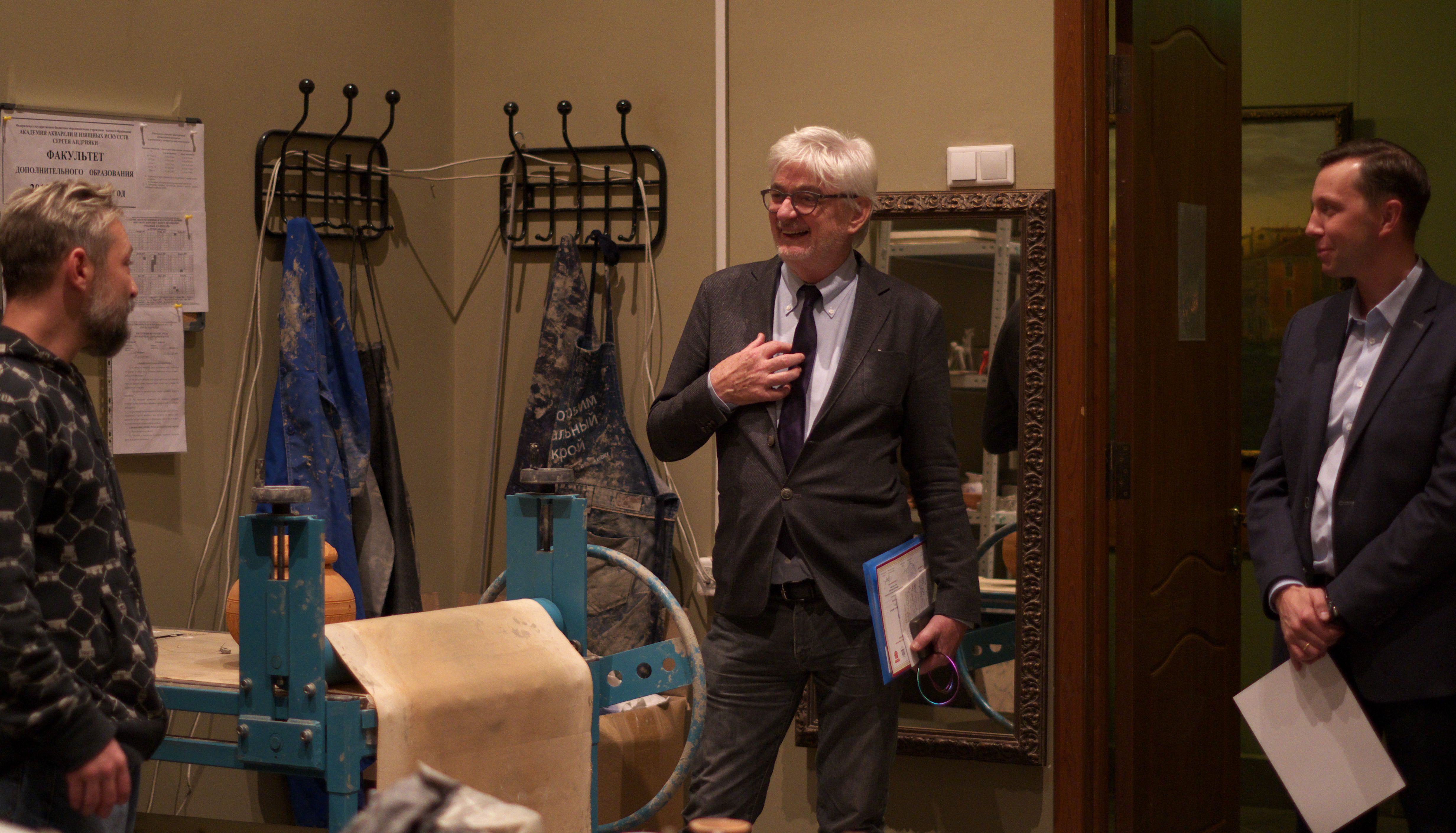 Владелец обойной фабрики Khroma и представитель семьи промышленников Мазюрель Ги Верстрате (Бельгия) посетил Академию акварели и изящных искусств Сергея Андрияки.
