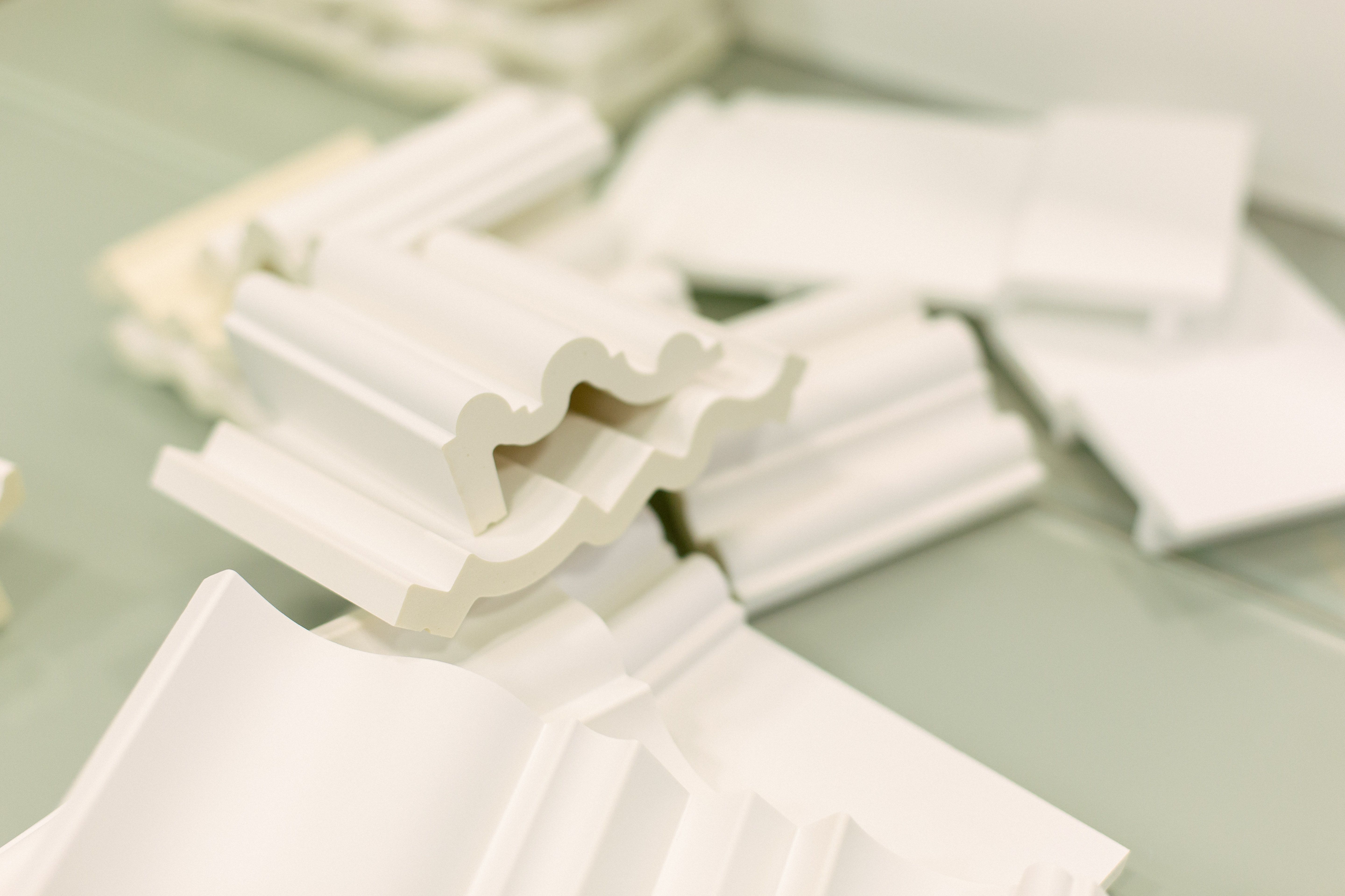 В коллекцию входят традиционные и составные карнизы, облицовочные панели и серия плинтусов в стиле элегантной современной классики.