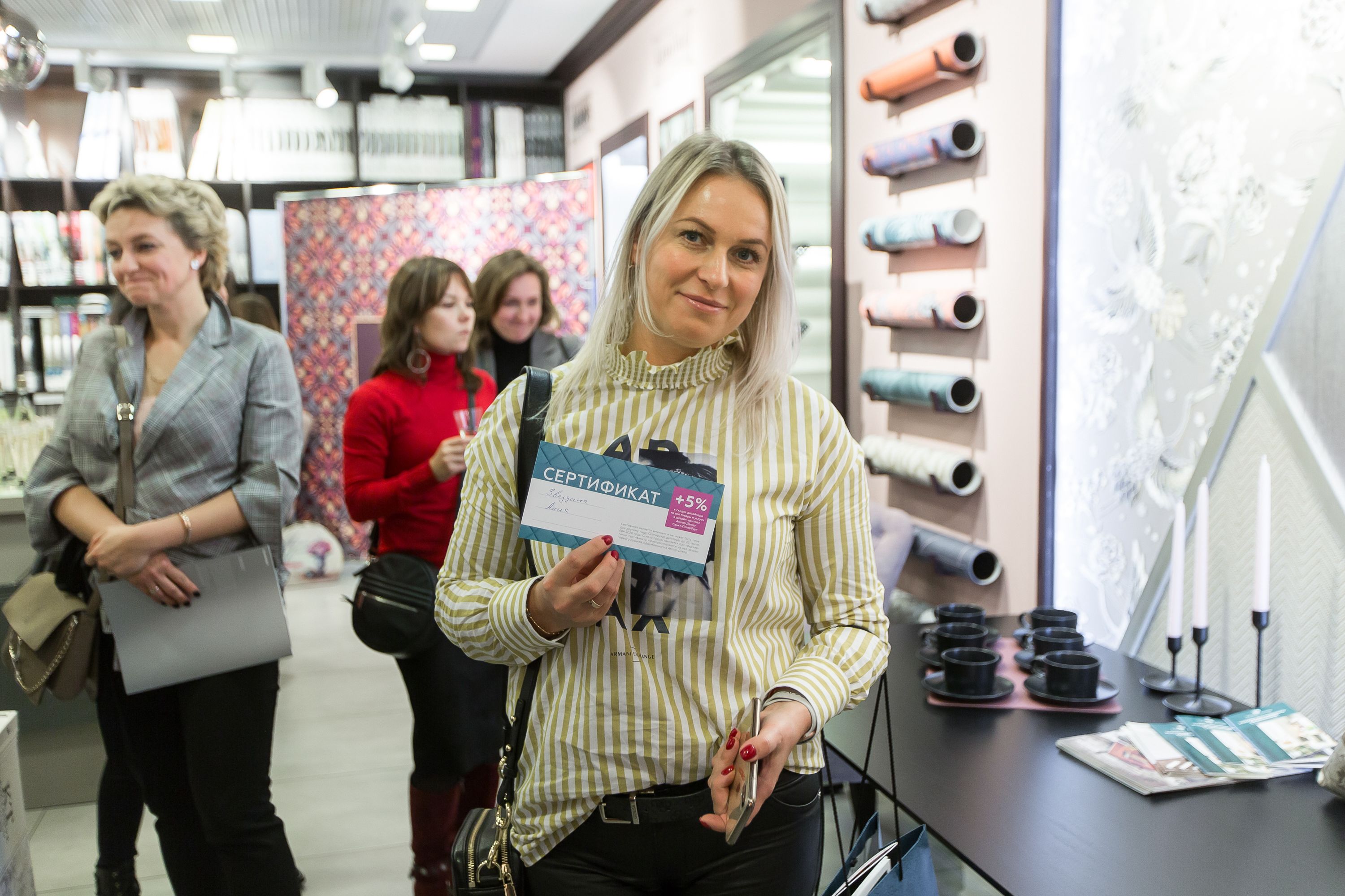 Следующим пунктом программы стала презентация по текстилю, посвященная хитам 2019 года, которые особенно полюбились заказчикам и ведущим дизайн-студиям. Особое внимание было уделено мультифункциональным и однотонным тканям, а также текстилю со сложными и необычными фактурами. Гости получили подарочные сертификаты со скидкой 15% на заказ текстильного оформления в Ампир Декор.