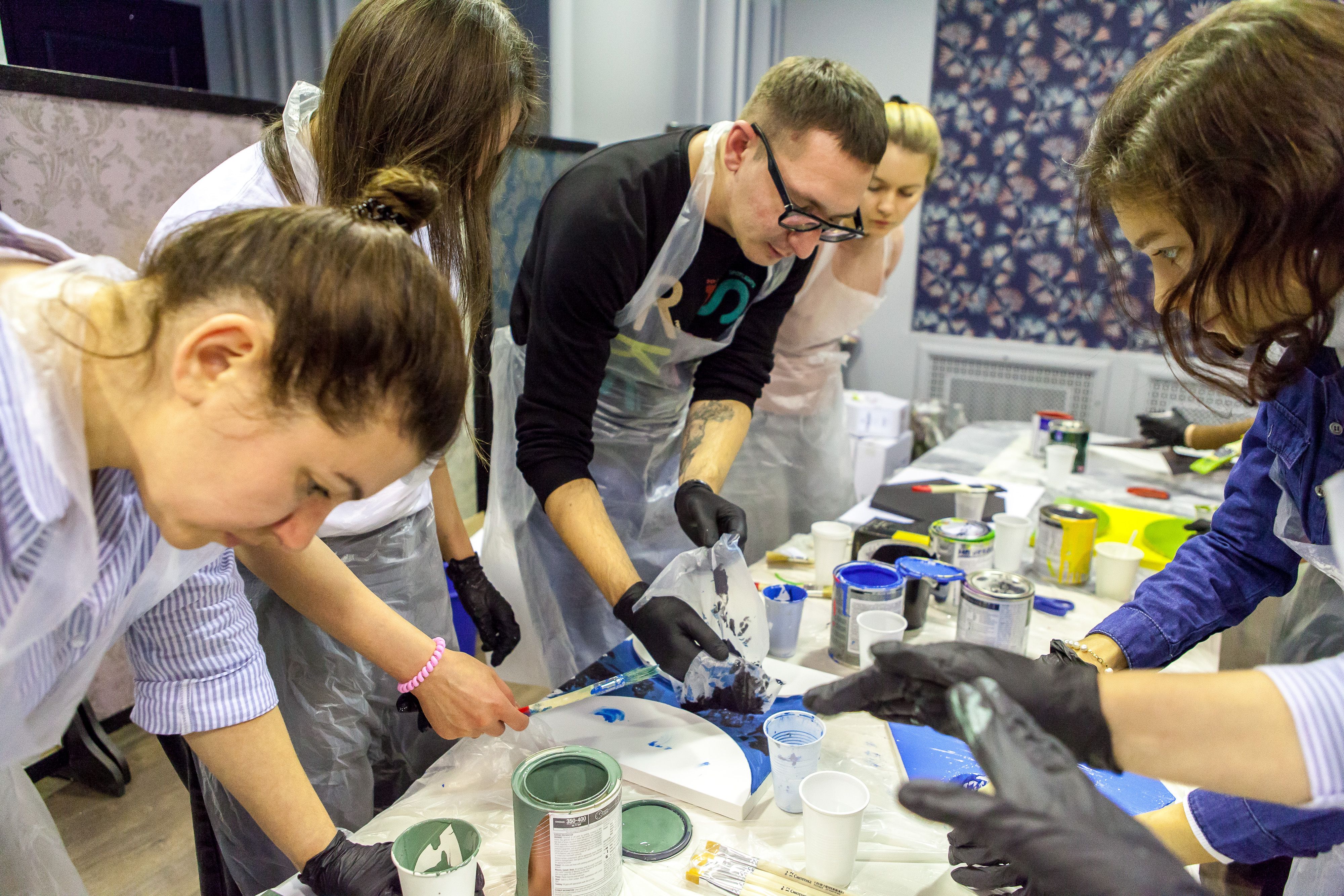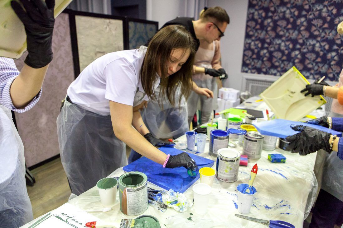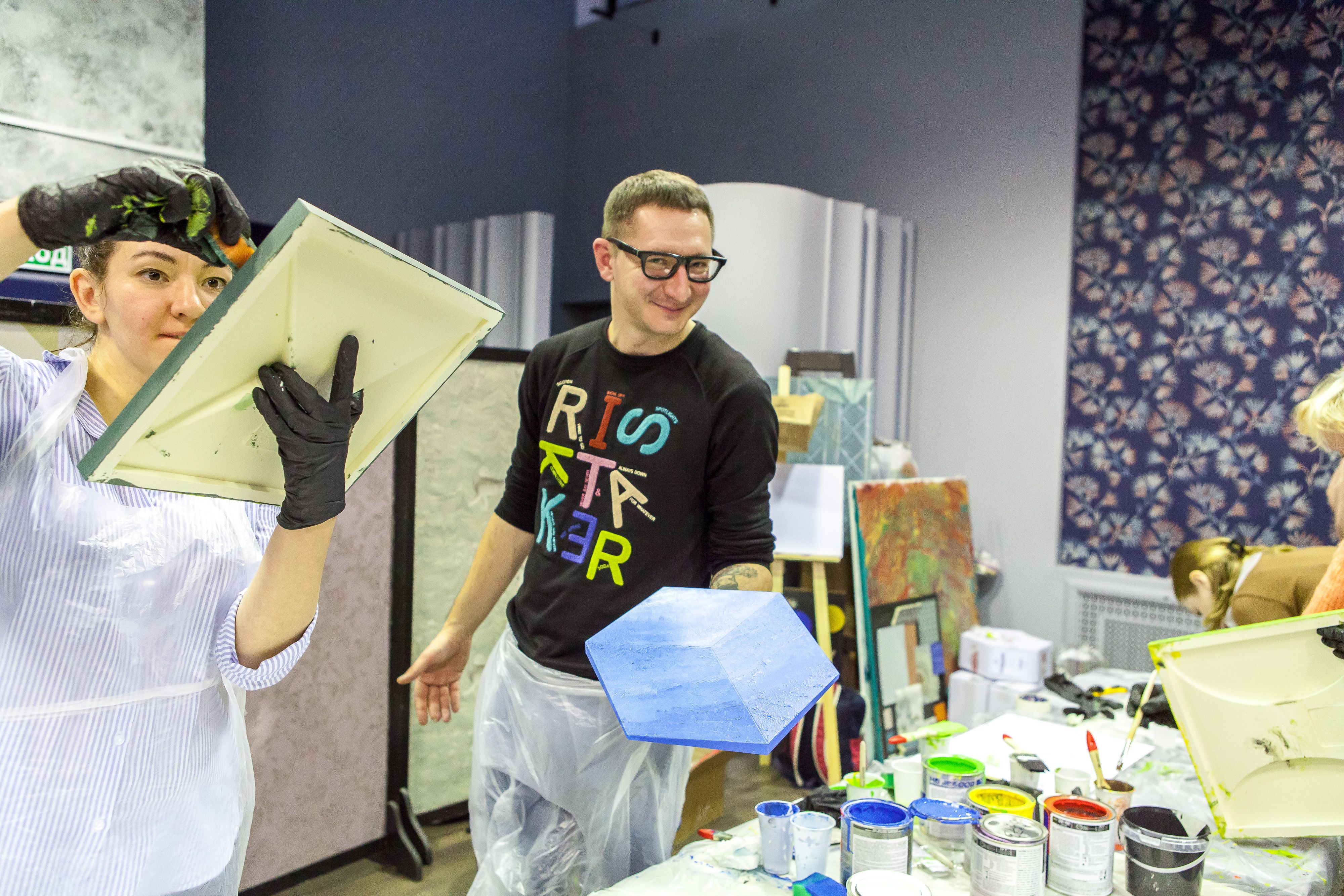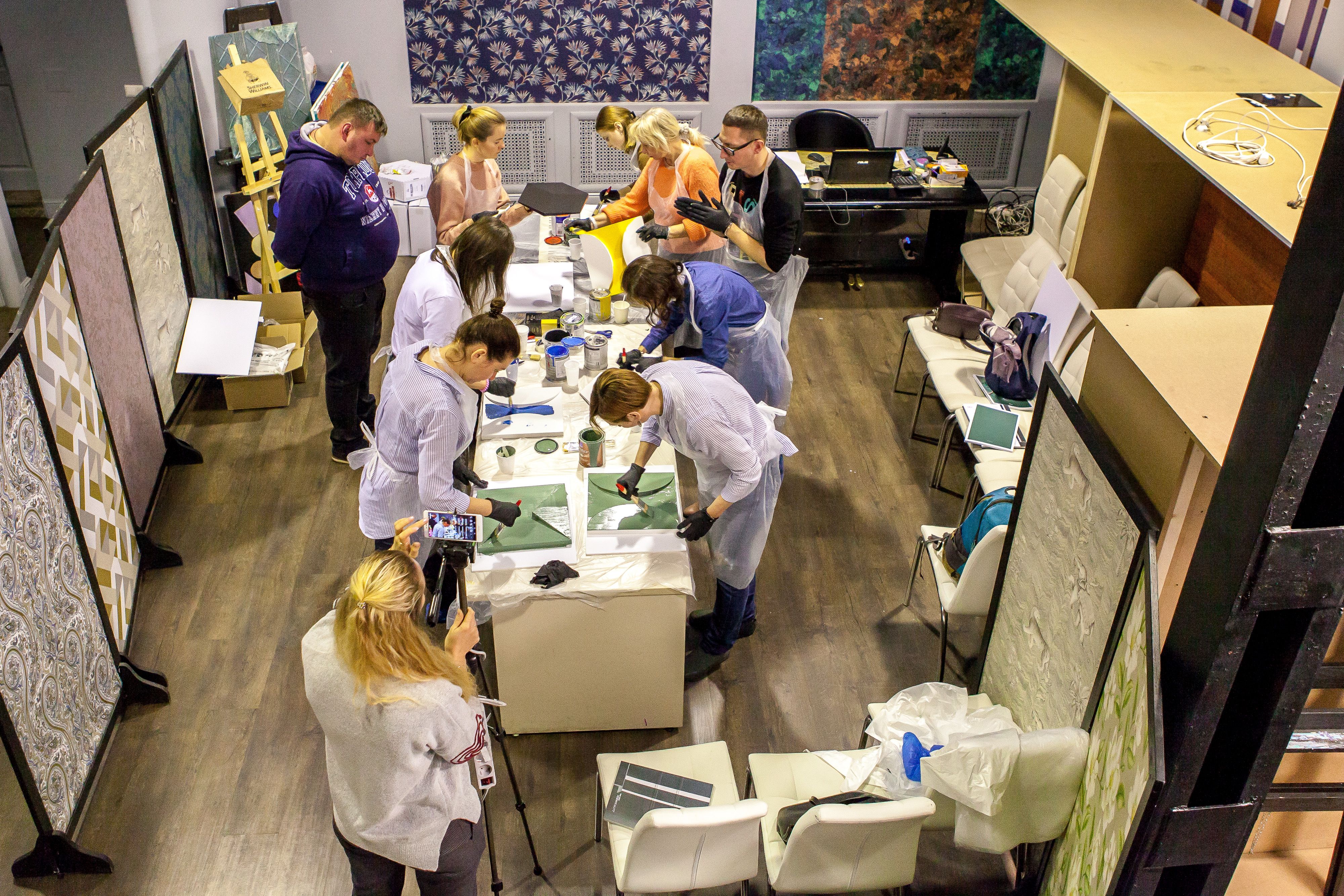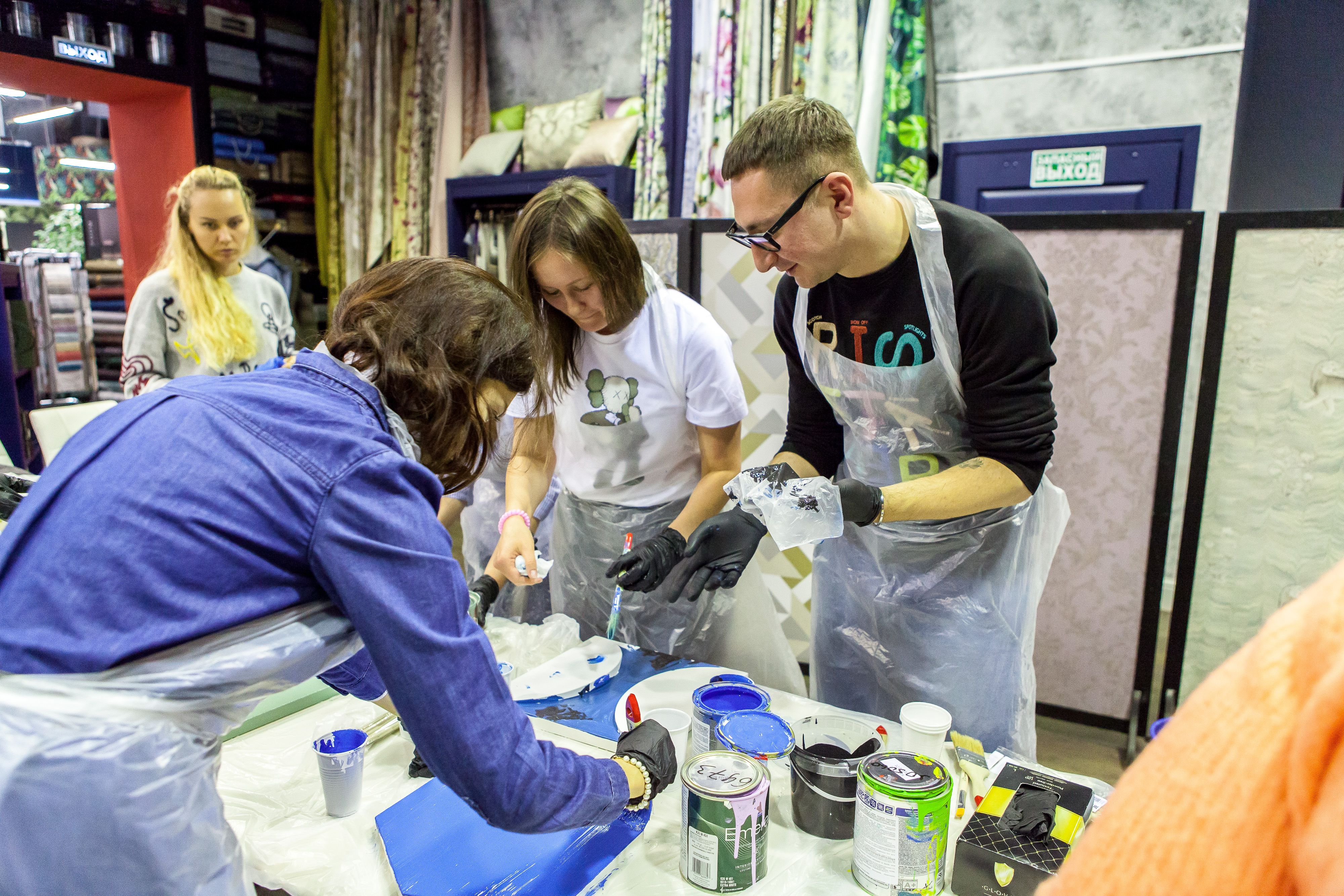 Для мастер-класса Центр Дизайна Мануфактура 5 предоставил краски Sikkens (Alphatex SF) и Sherwin-WilliamsSher (SuperPaint и Duration).