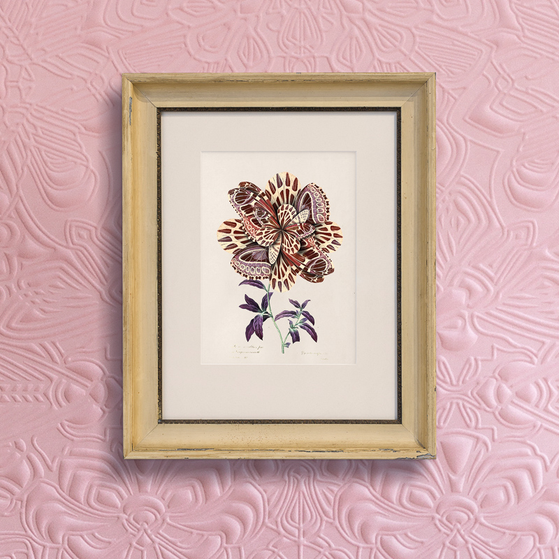 Mimic Moth — бабочки-мимициды, сливающиеся с цветами. Живой рельеф и цветочный орнамент создают атмосферу нежности
