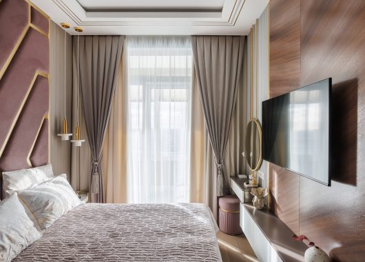Текстильное декорирование квартиры в ЖК Символ выполнено дизайнером по текстилю компании Ампир Декор Кубанцевой Ольгой. В этом проекте удалось создать уютную и стильную атмосферу. Элегантные портьеры, выполненные из современных тканей, наполняют пространство теплом. Ручные складки придают им изысканность, создавая глубину ровных линий. Канты добавляют дополнительный акцент, подчеркивая стиль и оригинальность. Тюль, легкий и прозрачный, мягко рассеивает солнечный свет. Римские шторы двух видов: из полупрозрачной вуали и ткани с ажурным рисунком стали идеальным решением для ванной комнаты. ПРЕМИАЛЬНЫЙ ТЕКСТИЛЬ НА ЗАКАЗ
