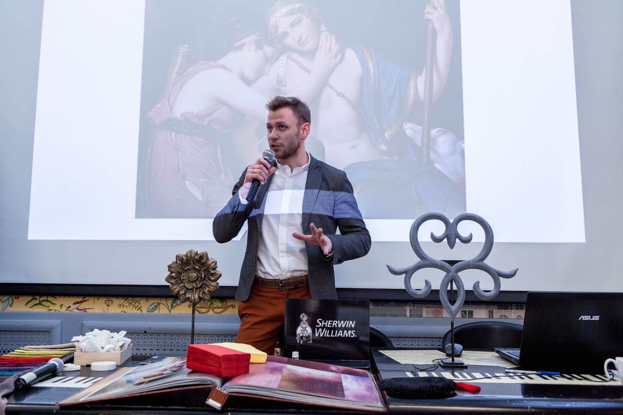 В начале лекции «Аромафэншуй» представитель Ампир Декор рассказал о поистине магической коллекции металлизированных обоев Alchemy от дизайн-бюро Arte.