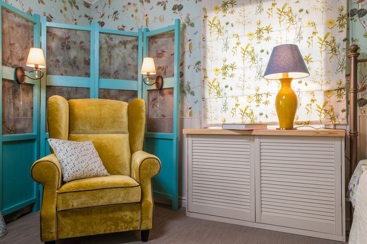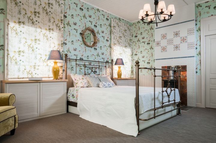 «Как интересно и светло!» – такова была первая реакция хозяев, вошедших в комнату после ремонта. Спальня действительно стала уютным гнездышком с нотками английского деревенского стиля. Комната обрела простор, и обои словно раздвинули стены.