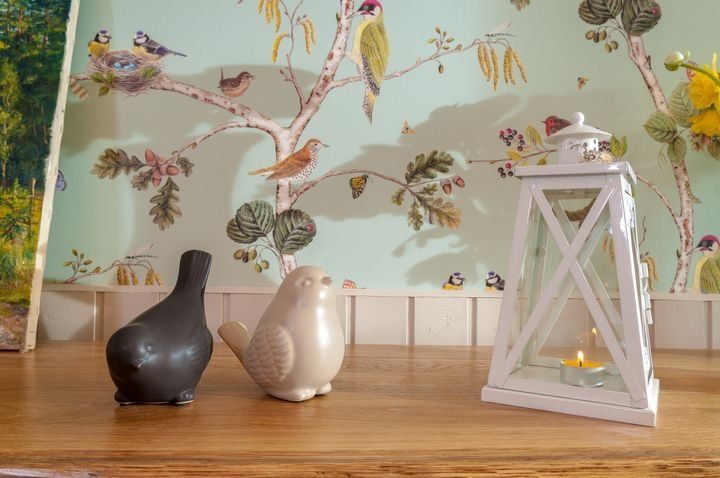 Обои из коллекции Woodland Walk выполнены на гладком и экологически безопасном флизелине. Их рисунок достаточно сложен и полон забавных деталей. На сказочных деревьях соседствуют дубовые желуди и сережки березы, ягоды смородины и шелковицы. Там вьют гнезда синицы, летают бабочки и стрекозы, а божьи коровки прячутся от дятлов.