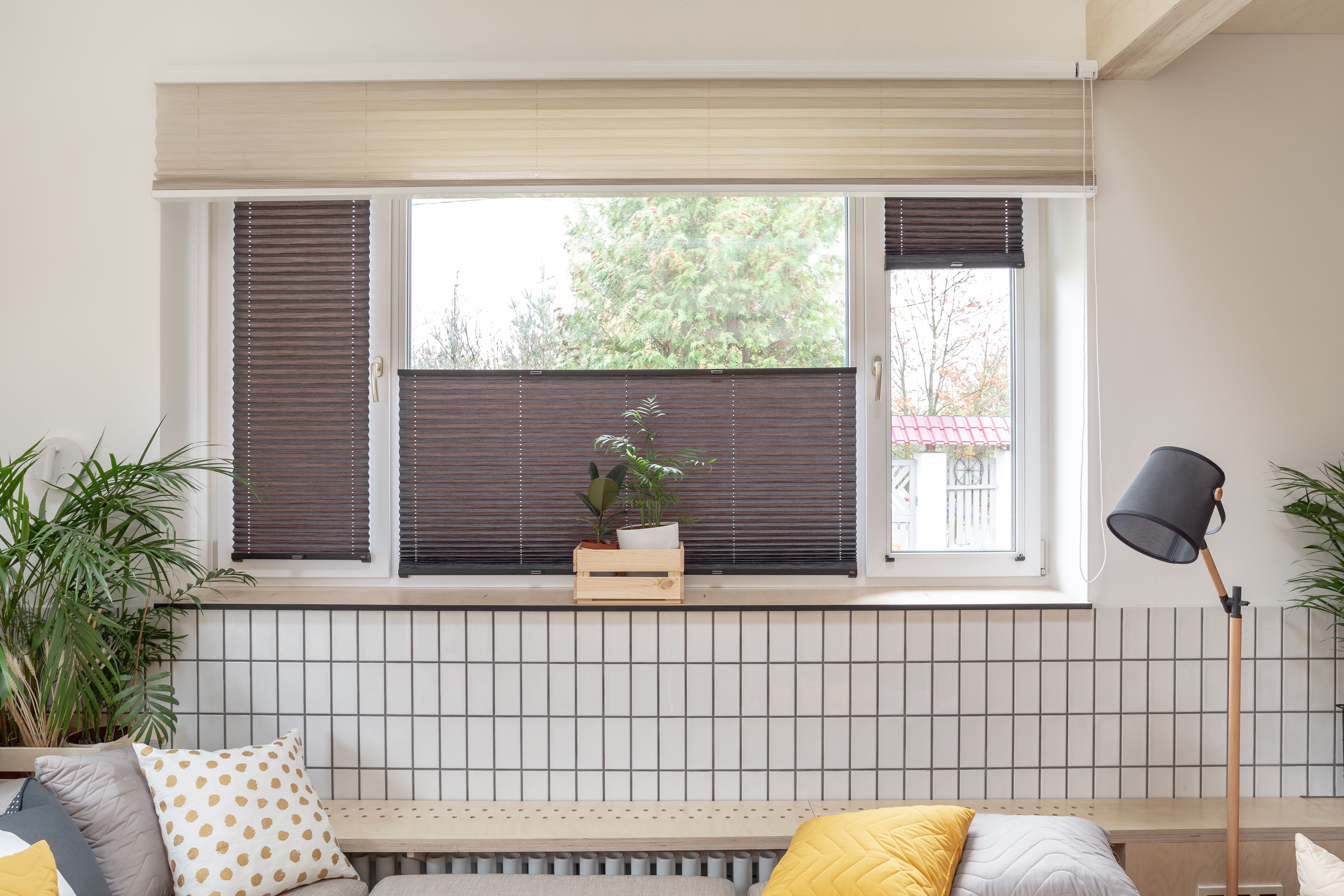 Лаконичный текстиль из черных штор-вееров и разноцветных подушек удачно дополняет концепцию азиатского стиля.