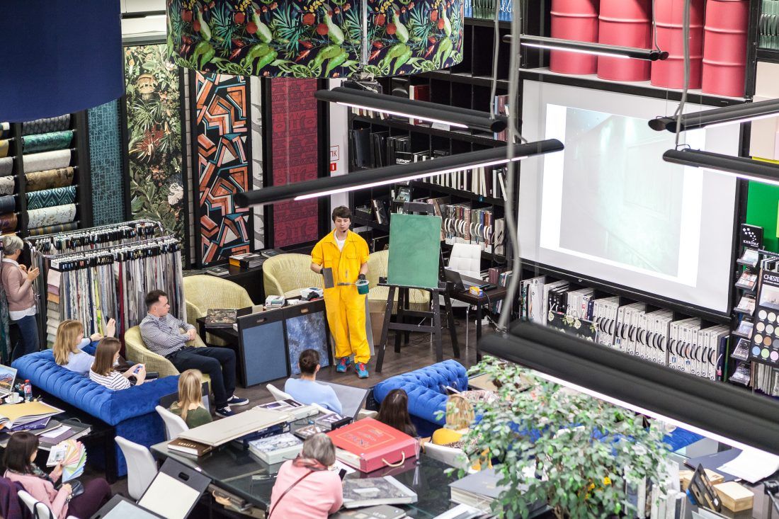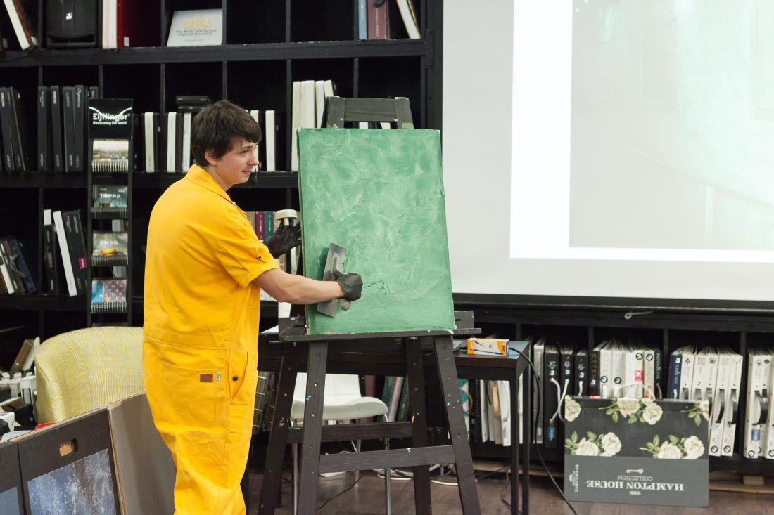 Технолог Ампир Декор Кирилл Кияненко провел показательный мастер-класс по нанесению декоративных штукатурок Capadecor в ходе #AmpirDesignWeek в Центре Дизайна Мануфактура 5.