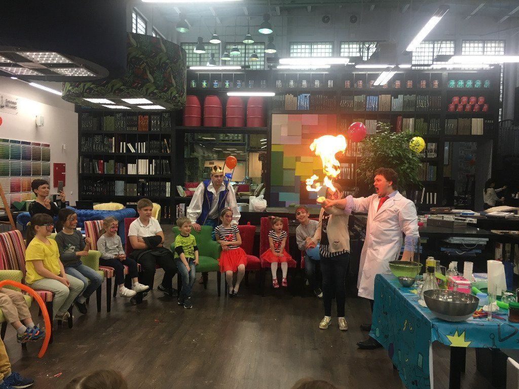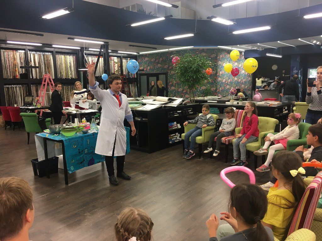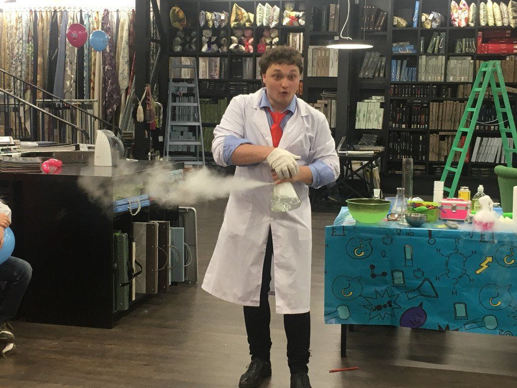 После вкусного ланча с пиццей и фруктами гости отправились на настоящее химическое шоу — невероятное магическое приключение, включающее в себя интересные и зрелищные опыты.