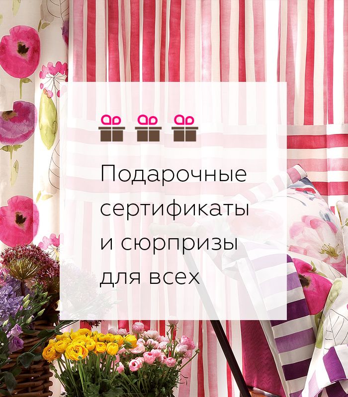 В подушках будут спрятаны сюрпризы: дополнительные скидки на карнизы и на услуги монтажа, в том числе супер-скидка 30% на карнизы и монтаж карнизов и штор!