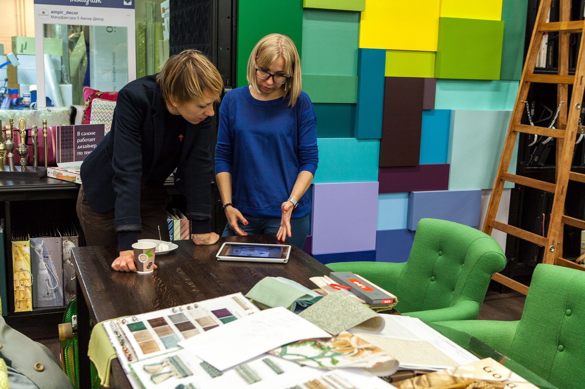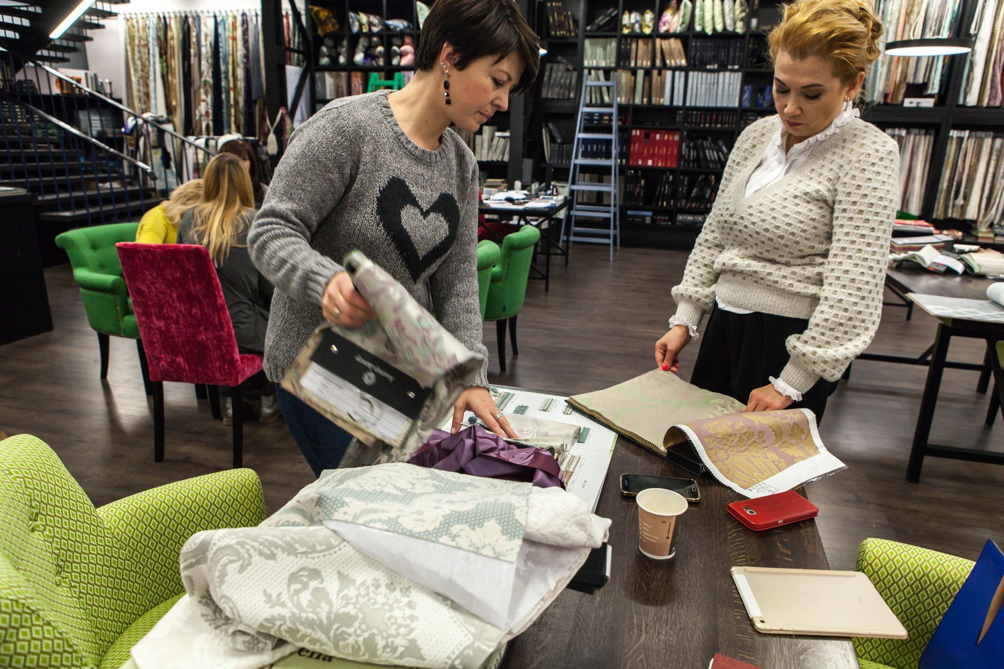 Наши дизайнеры по текстилю и технолог производства с удовольствием встретились с будущими и уже знакомыми заказчиками и рассказали об услугах текстильного оформления и обивки мебели.