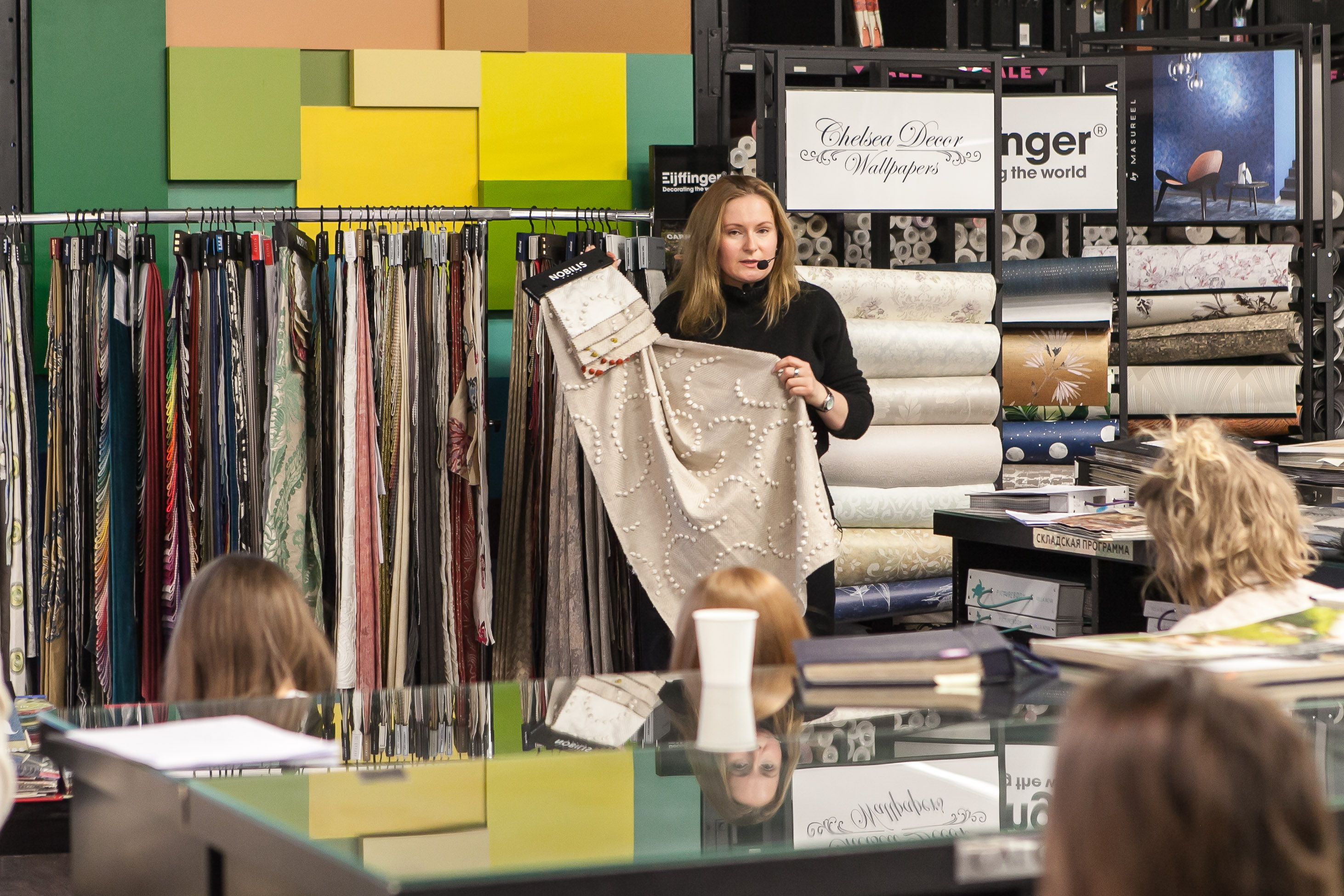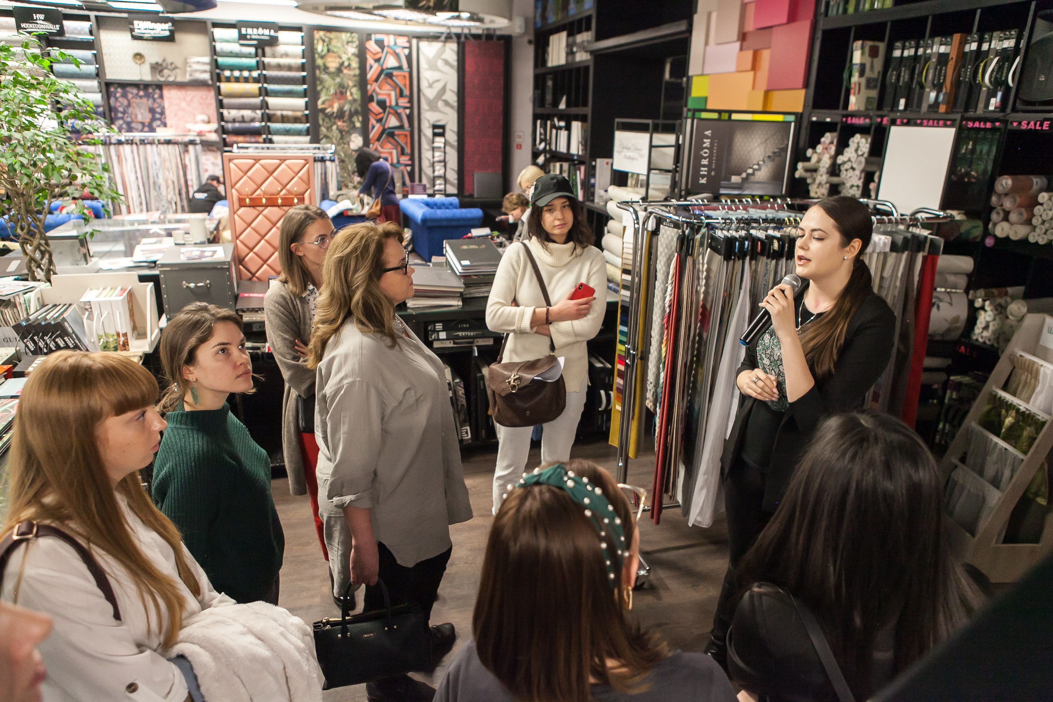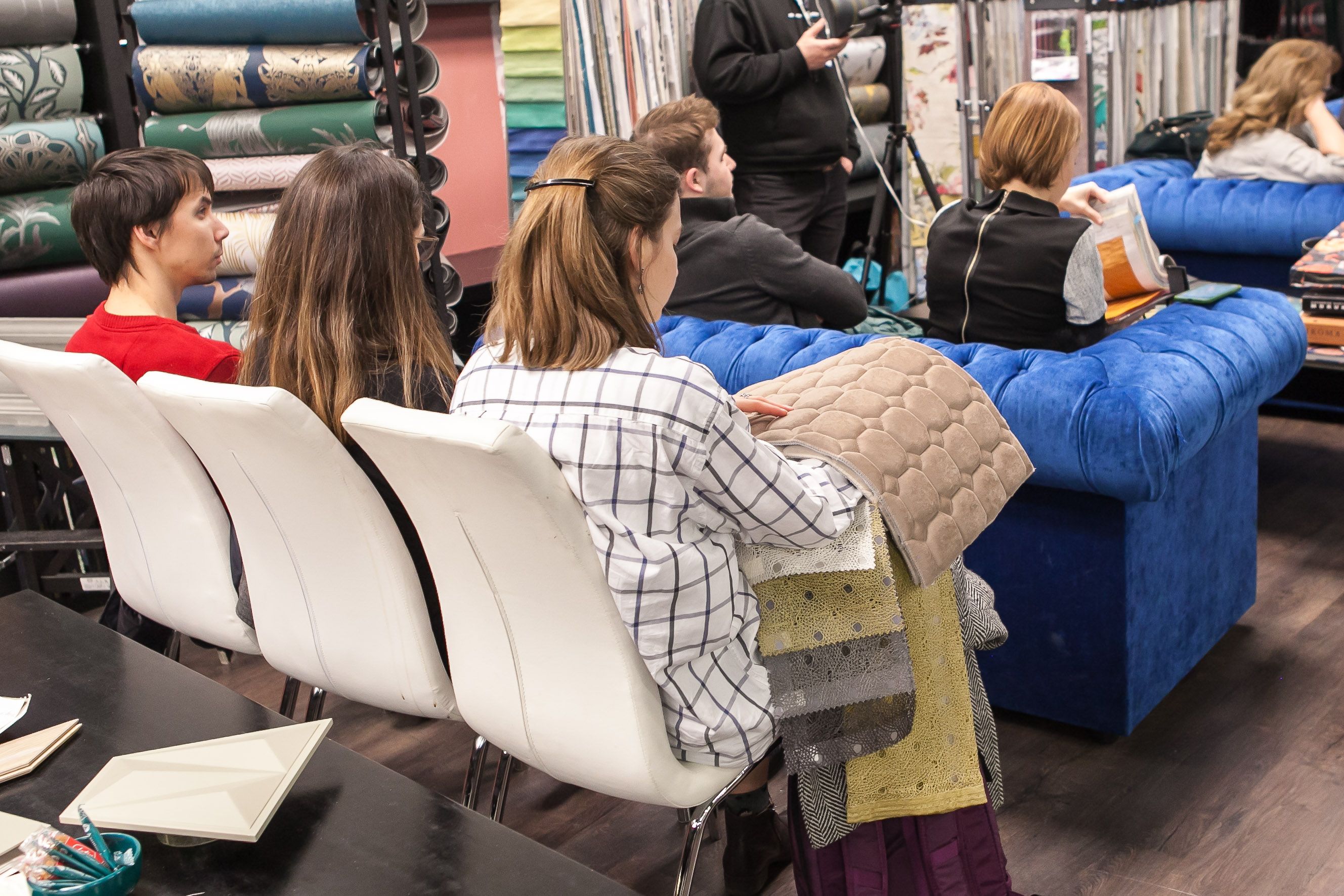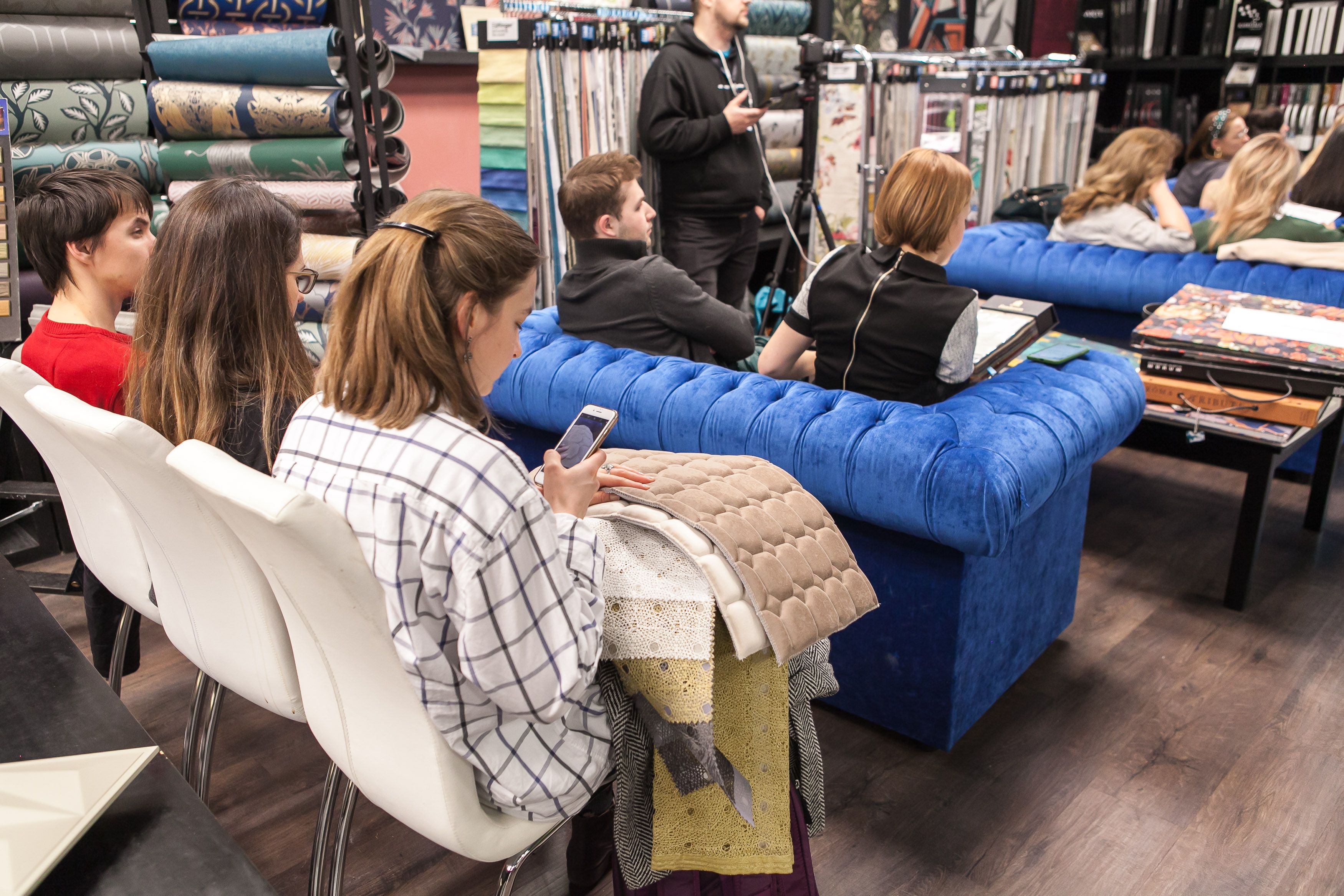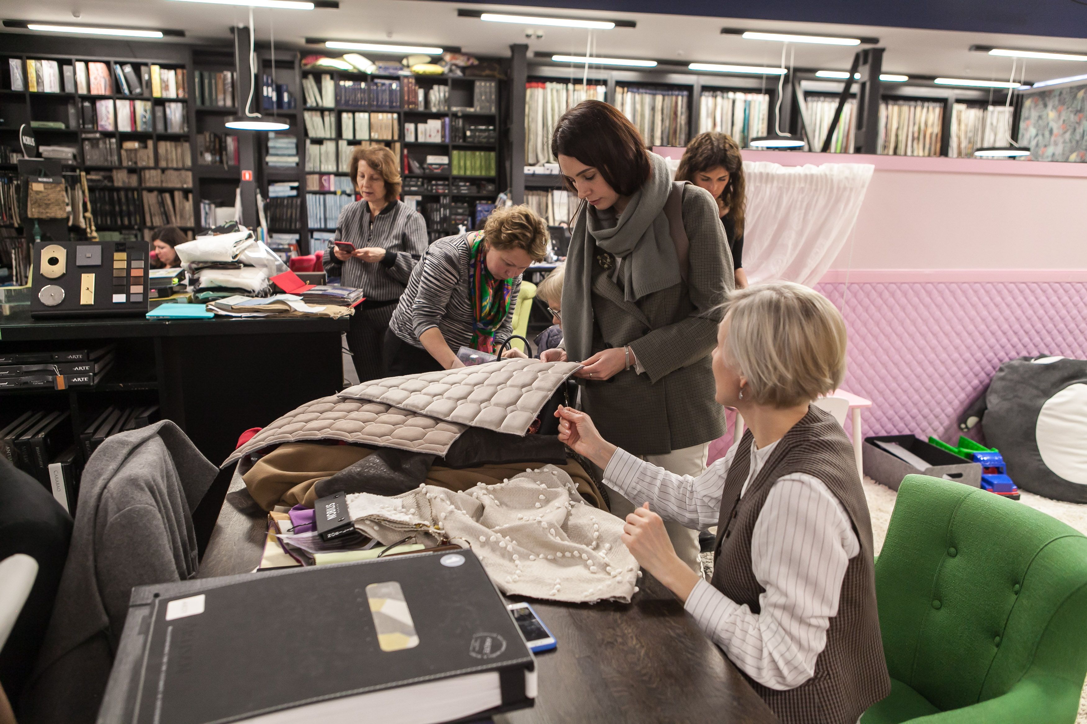 Центр Дизайна Мануфактура 5 Ампир Декор встретил неофитов Skillbox ярким многообразием современных тканей.