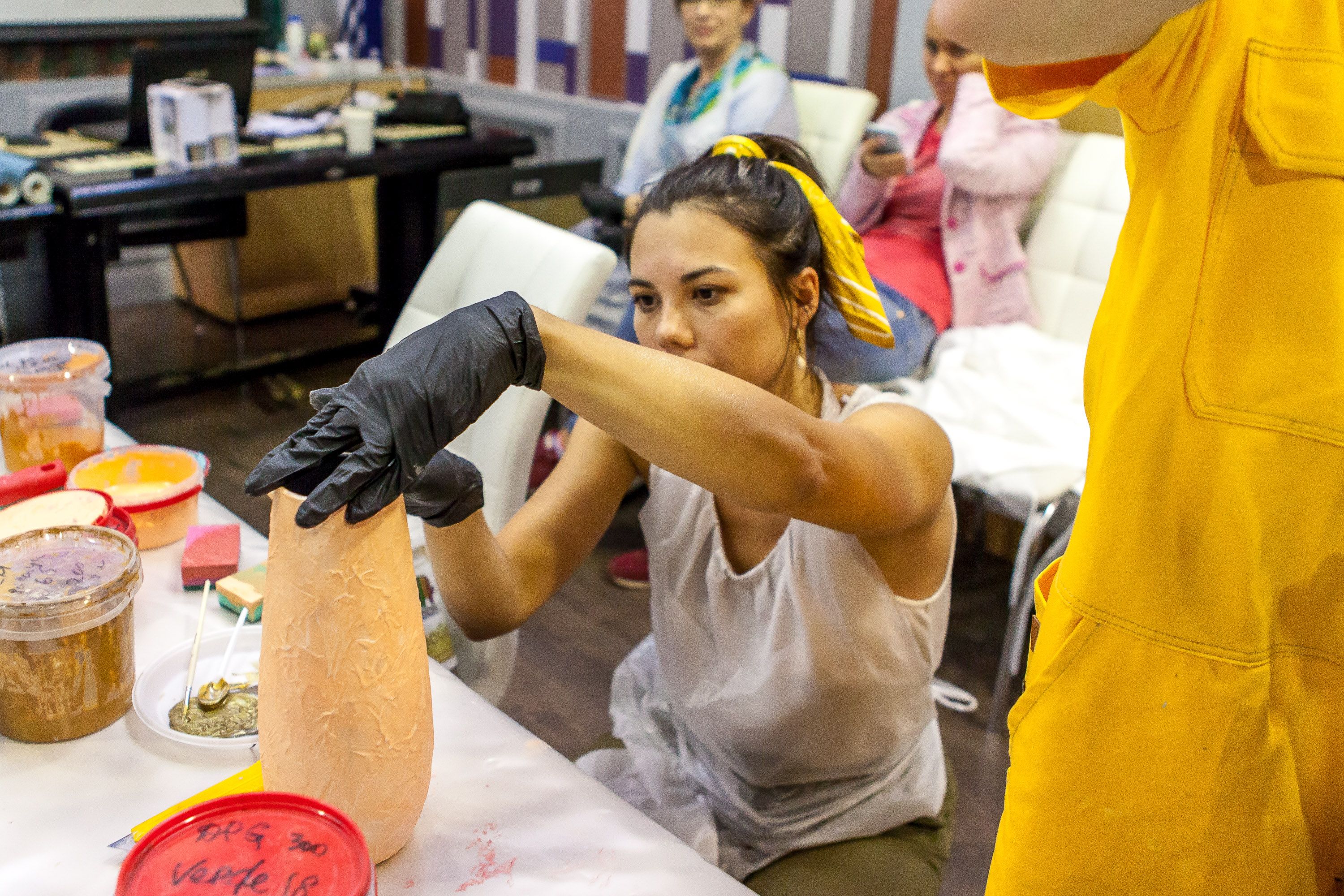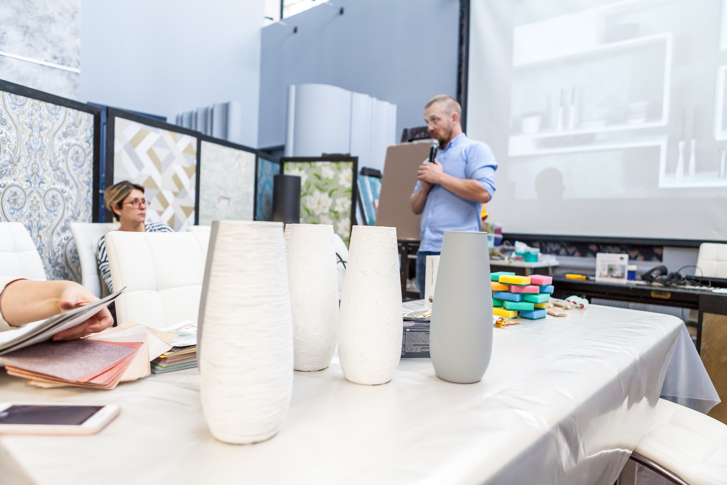 Бренд-менеджер Евгений Бухарев и технолог Кирилл Кияненко показали гостям мастер-класса популярные виды покрытий Capadecor, продемонстрировали этапы нанесения штукатурок и различные варианты фактур. Общение с со специалистами в формате «вопрос-ответ» завершилось практической частью, на которой участники самостоятельно задекорировали вазу с помощью материалов Capadecor.