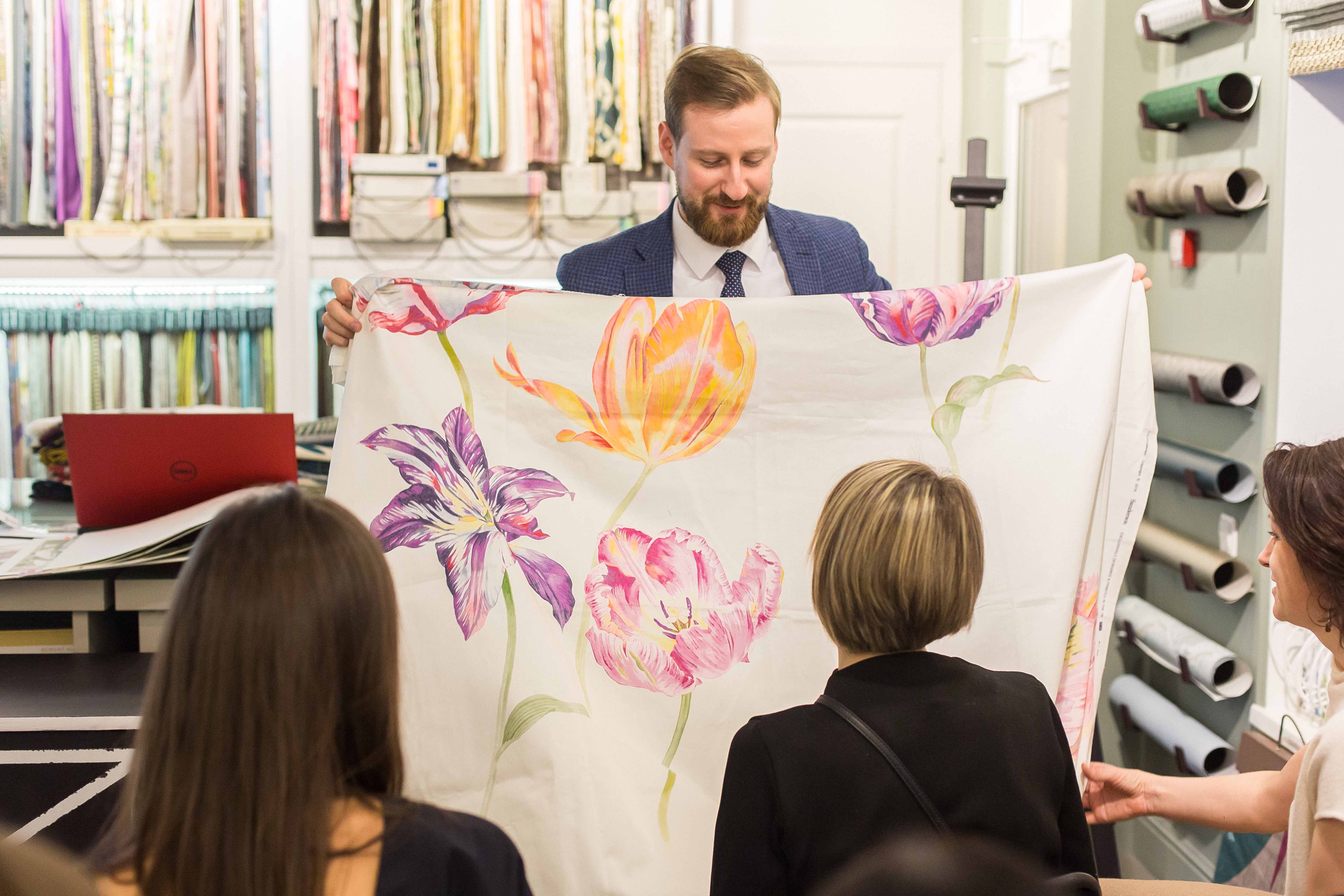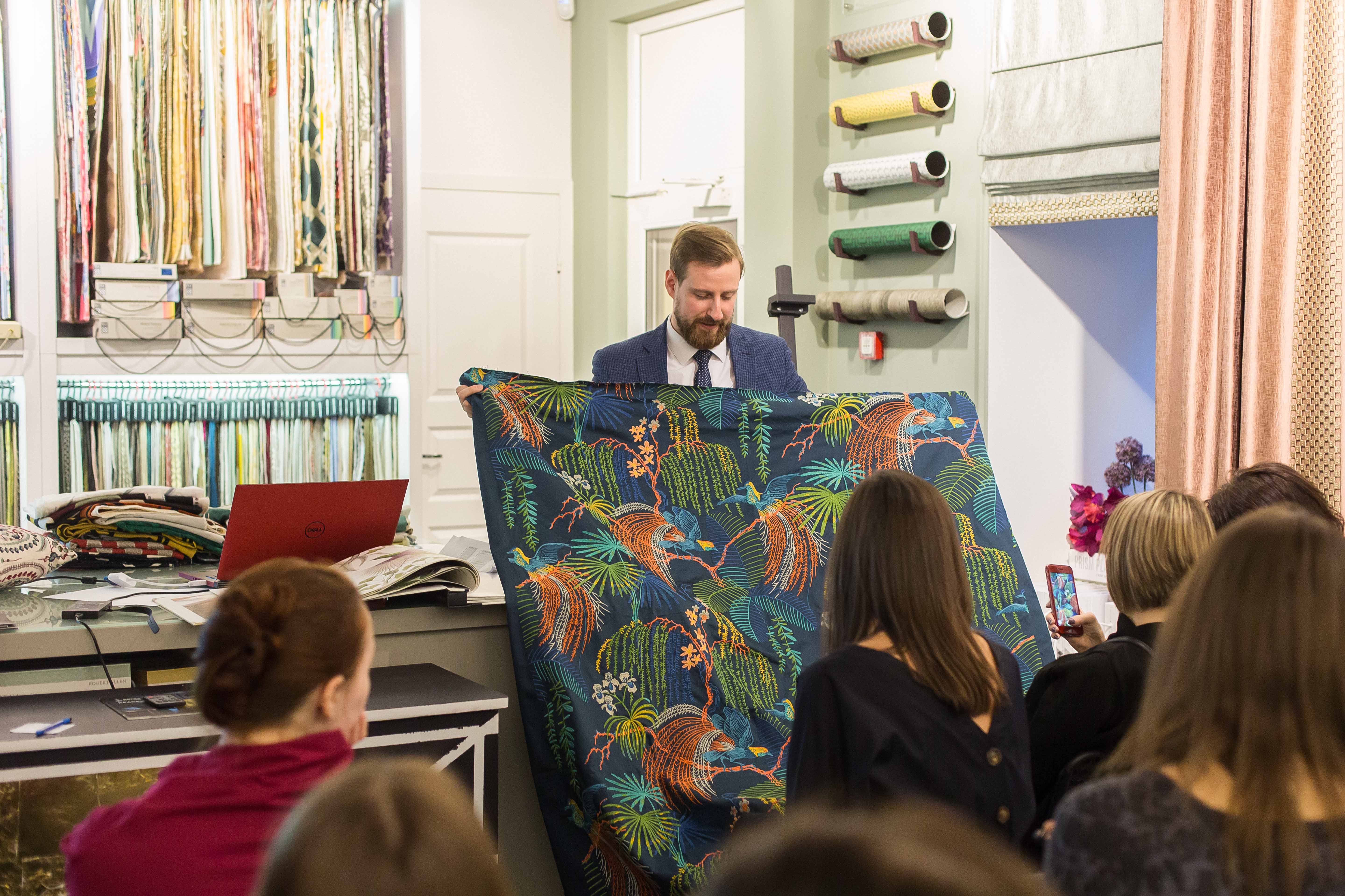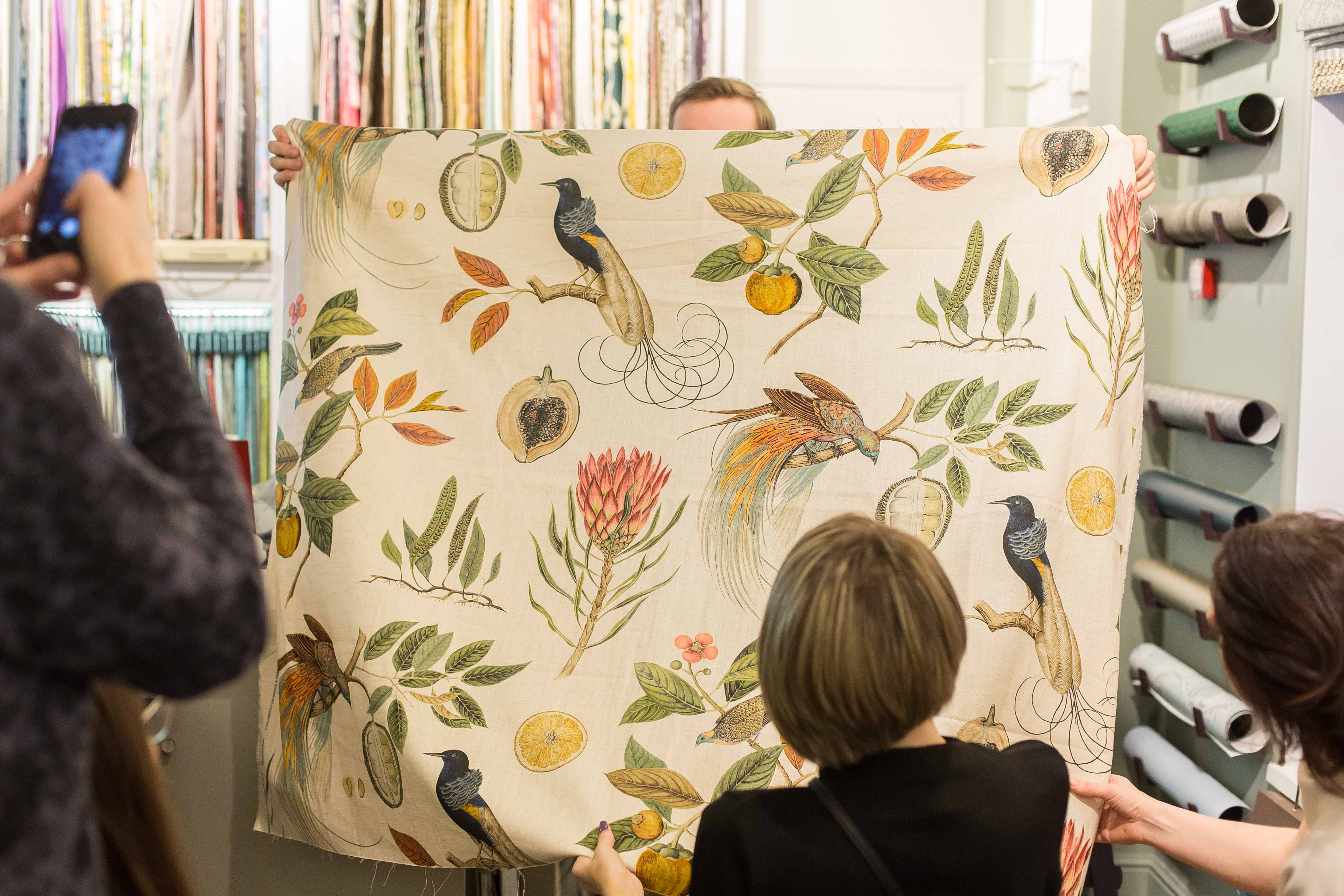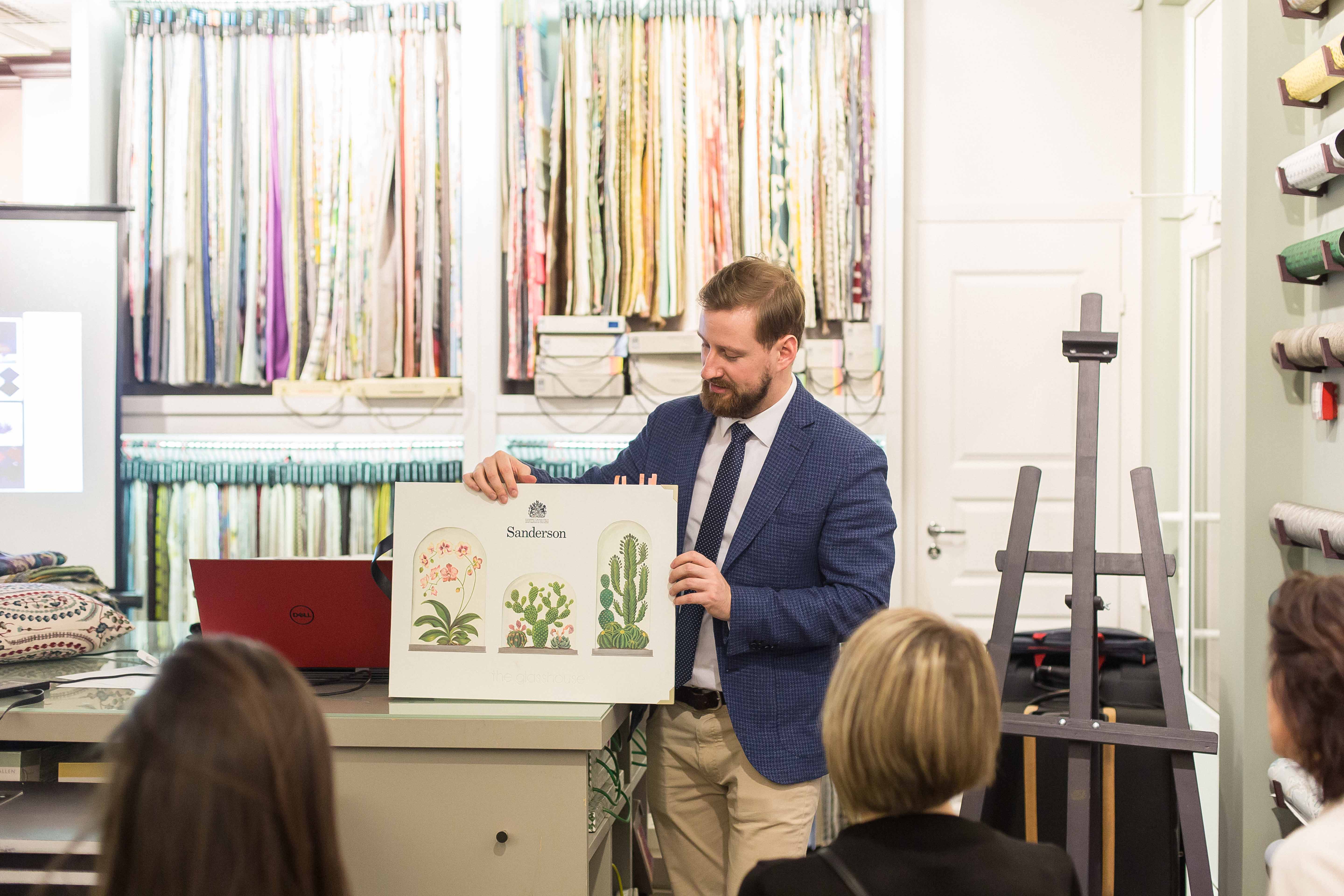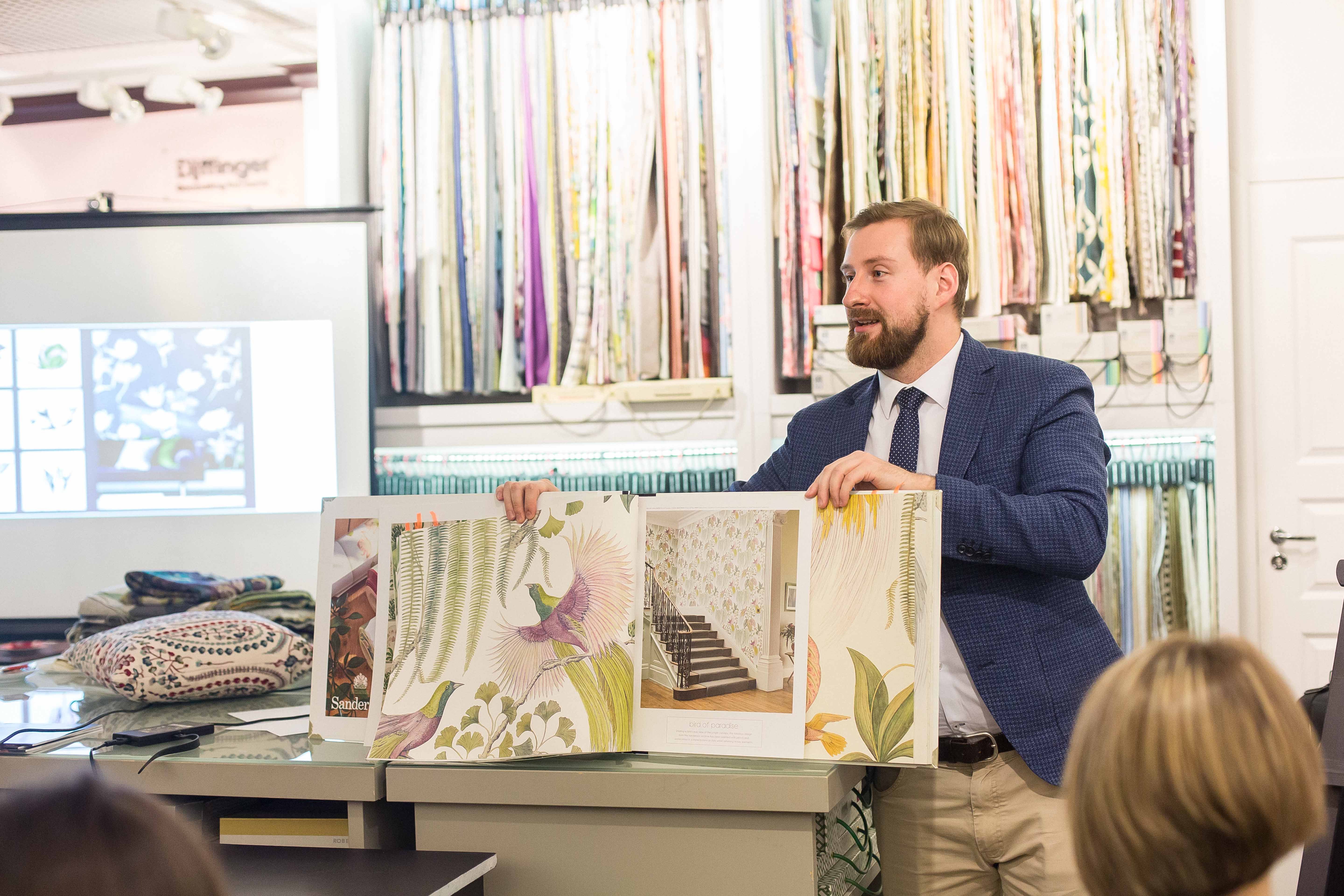 В салоне Ампир Декор на Пушкинской, 19 прошла по-весеннему яркая презентация новинок от английских брендов Sanderson, Harlequin, Scion и Zoffany.