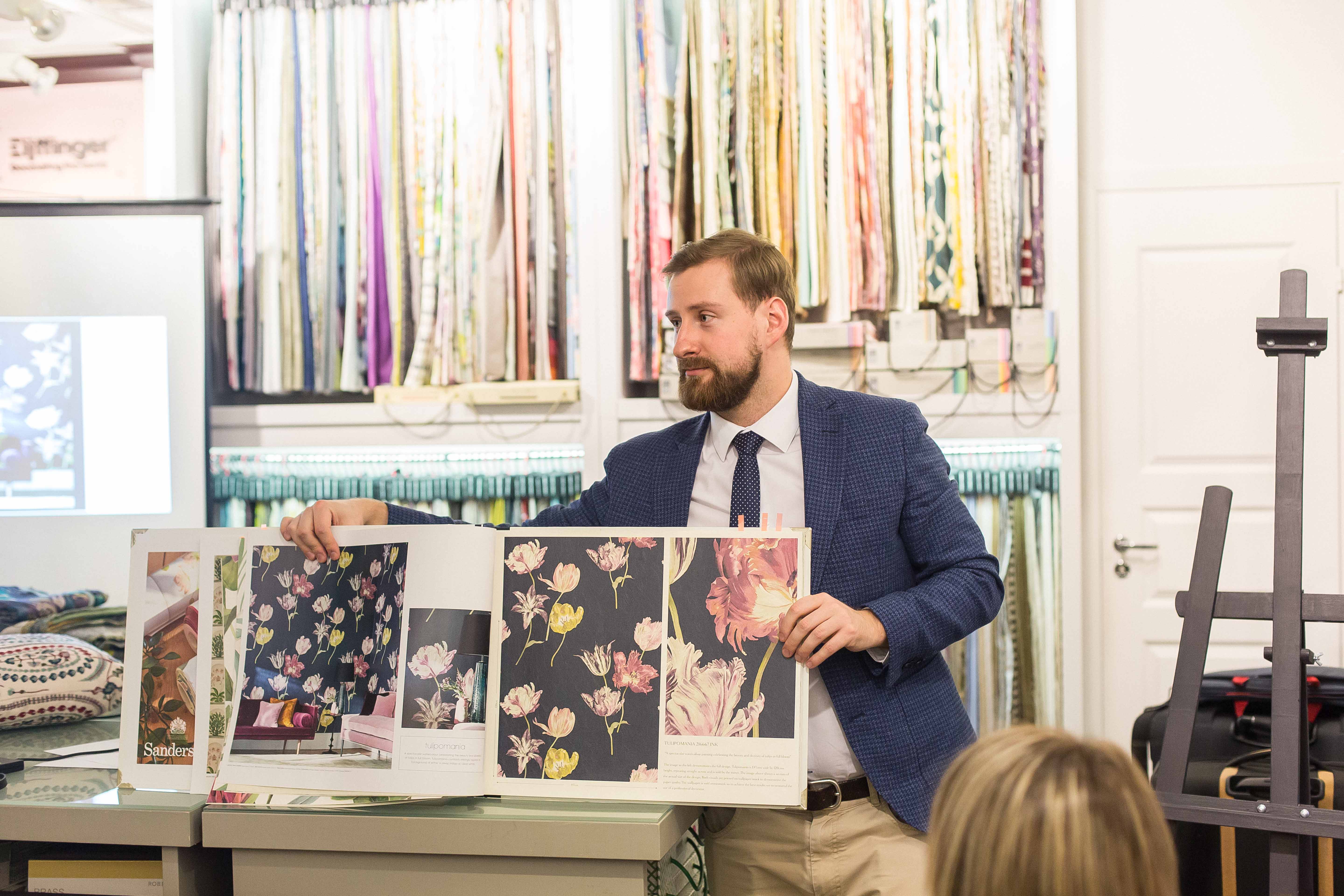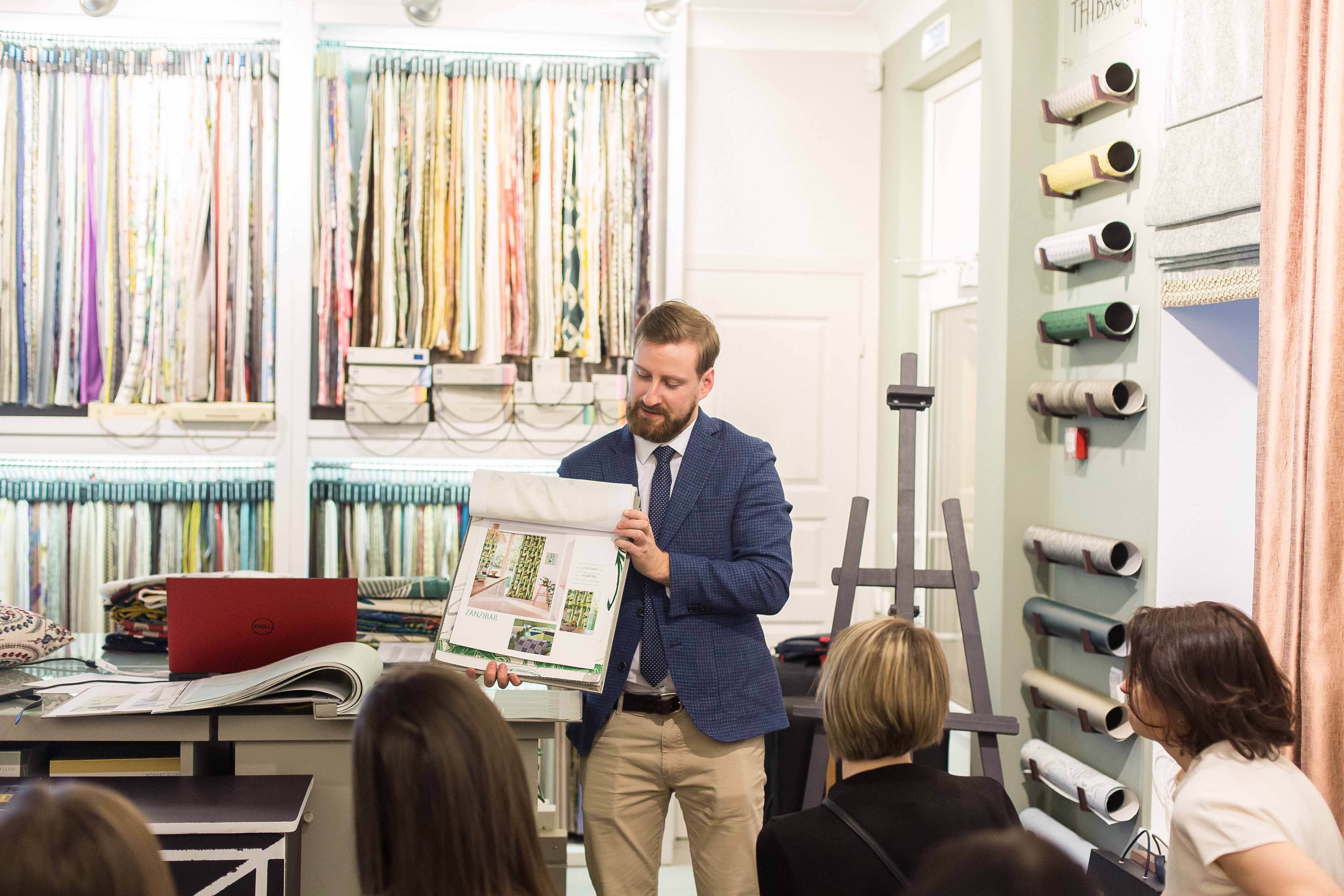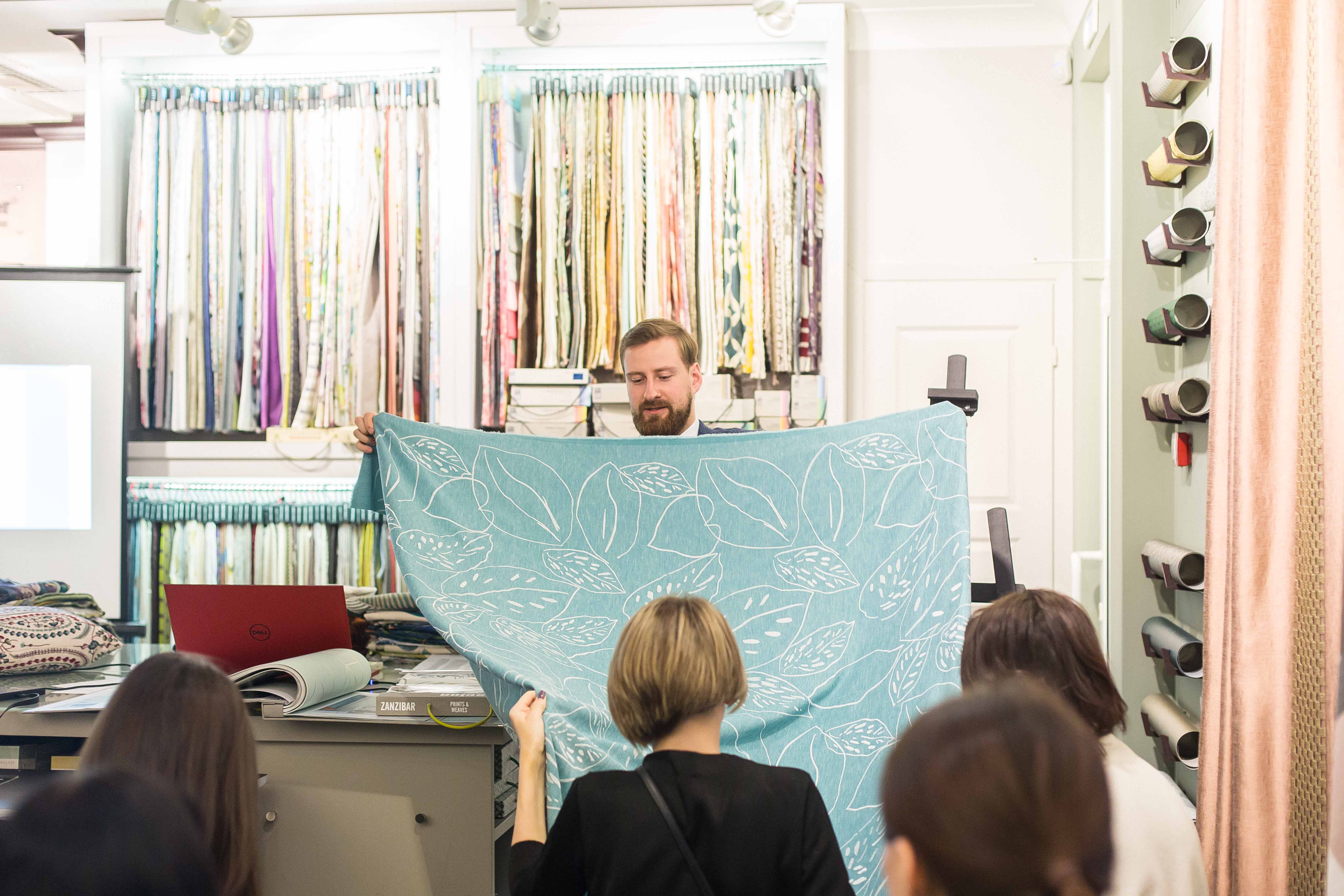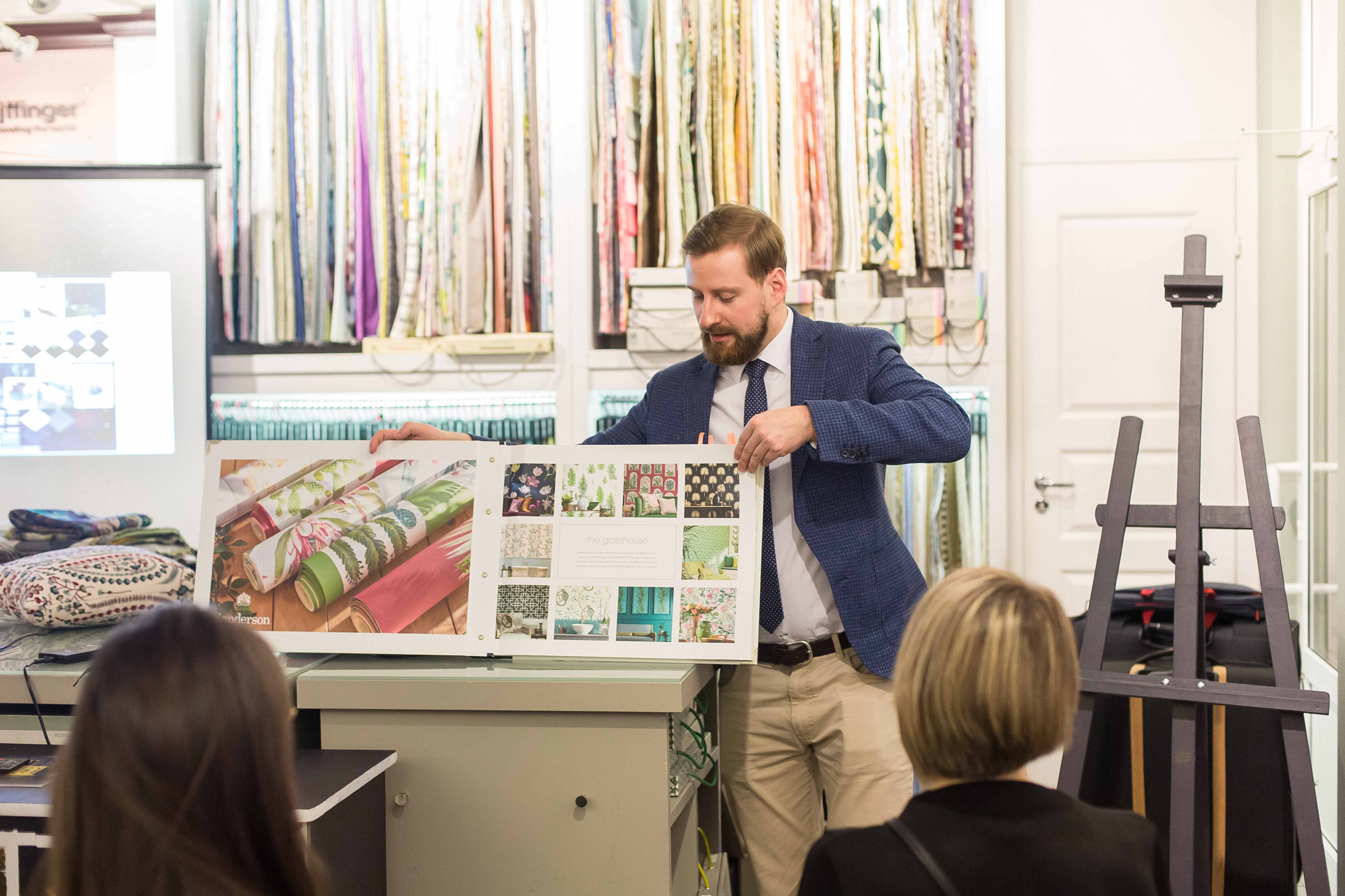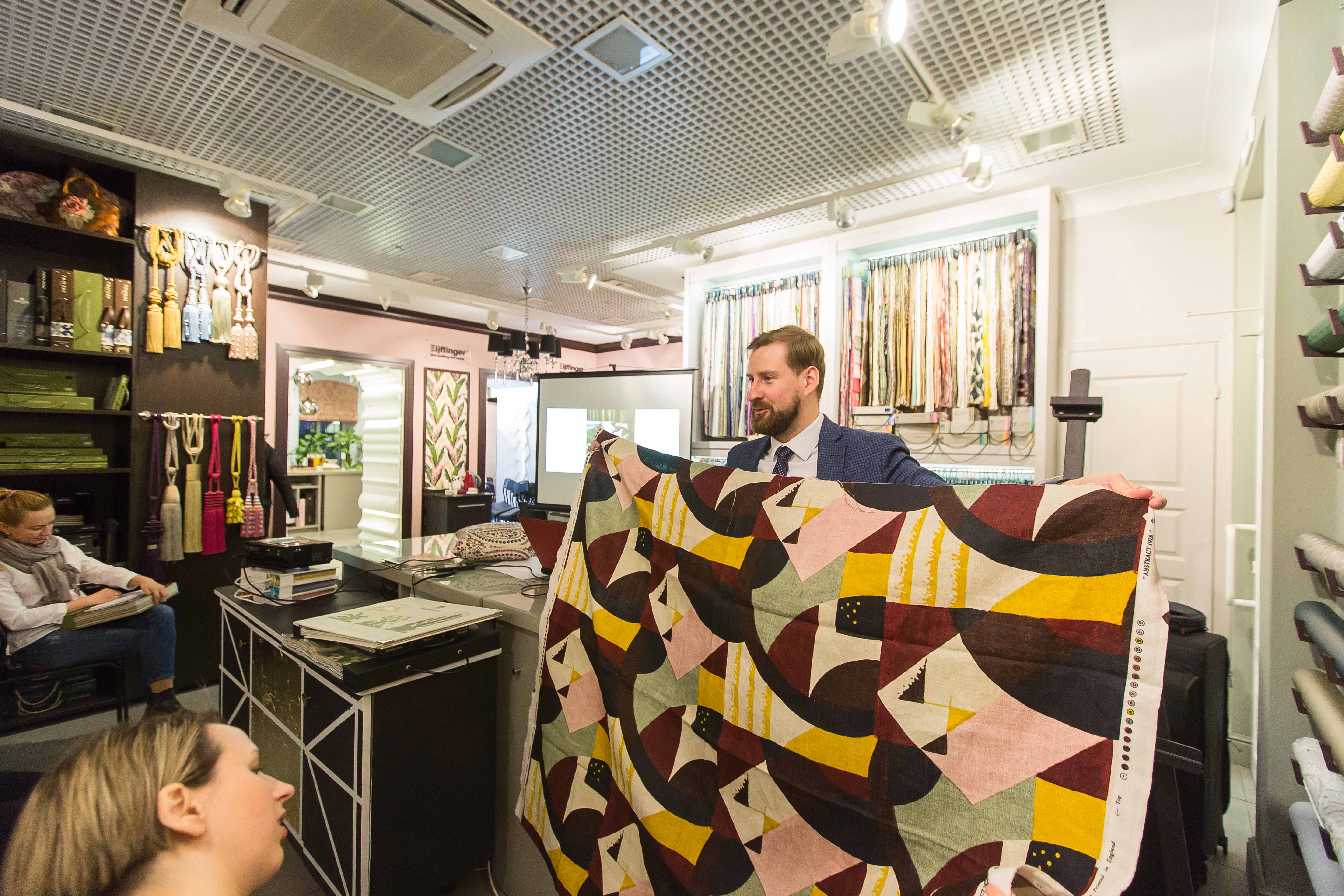 В салоне Ампир Декор на Пушкинской, 19 прошла по-весеннему яркая презентация новинок от английских брендов Sanderson, Harlequin, Scion и Zoffany.