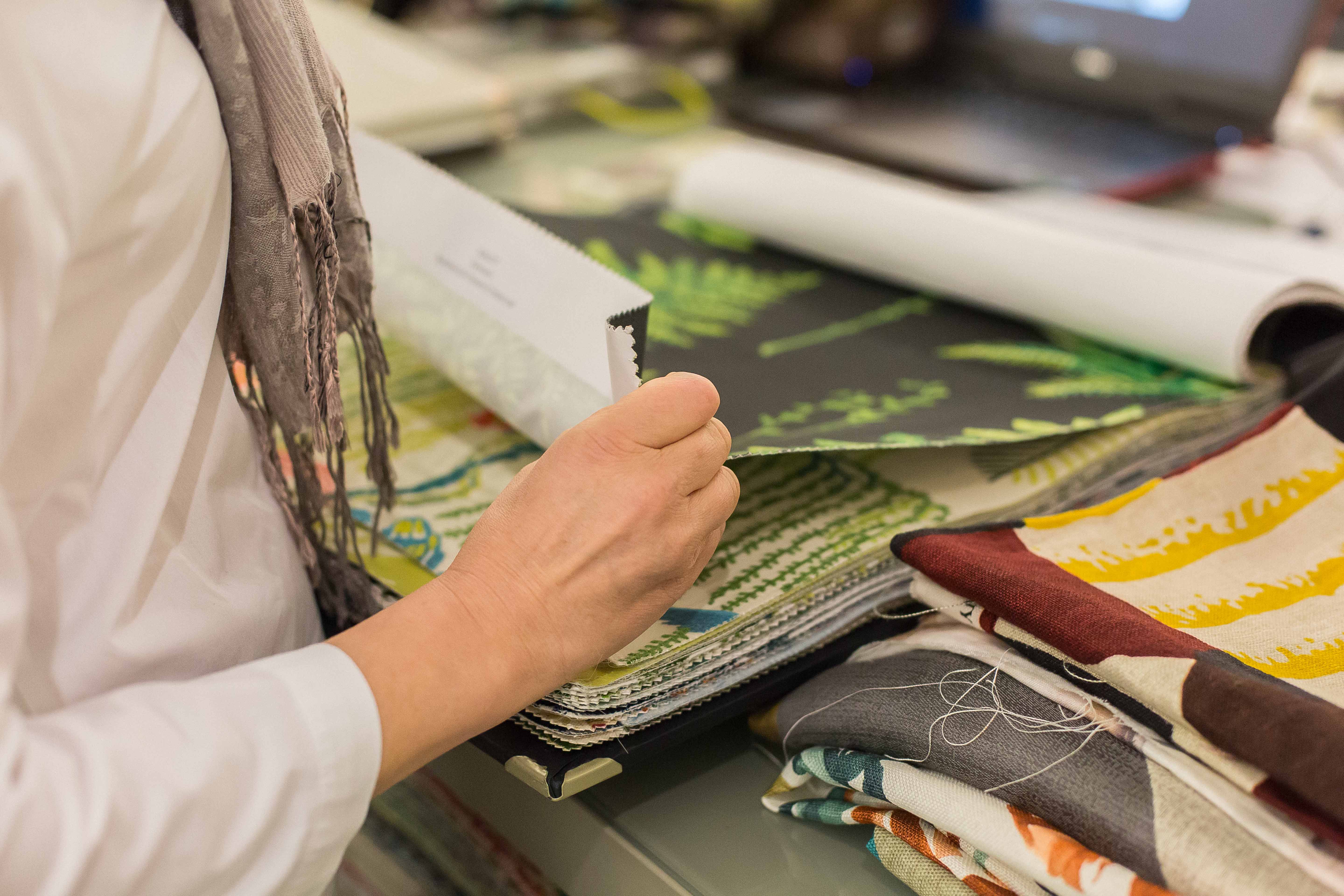 Ткани Harlequin Atelier — это вдохновение винтажной модой 70-х. Изюминка коллекции с геометрией и растительными принтами — имитация росписи по керамике с текстурными рисунками и мазками. В серию материалов вошли восемь набивных тканей, четыре тканых полотна и одна вышивка.