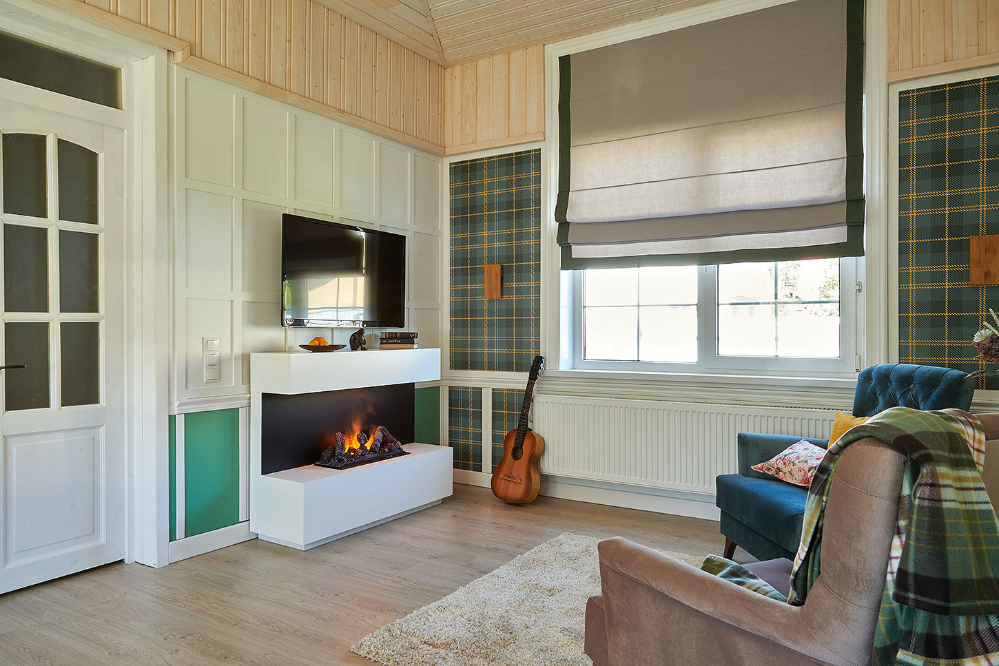У героя выпуска есть большой загородный дом, где любит собираться вся многочисленная семья. Однако гостиная дачи не уютная, поэтому перед дизайнером проекта Этерией Джиджоевой стояла задача создать в комнате приятную атмосферу и сохранить лаконичный европейский стиль. Тёплые тона, прямоугольные формы, камин, уютный плед на мягких креслах и много дерева…