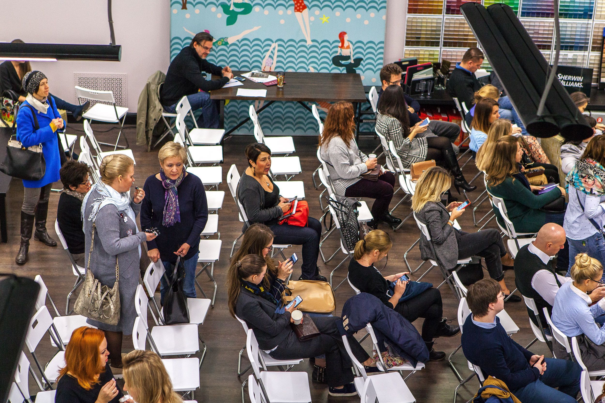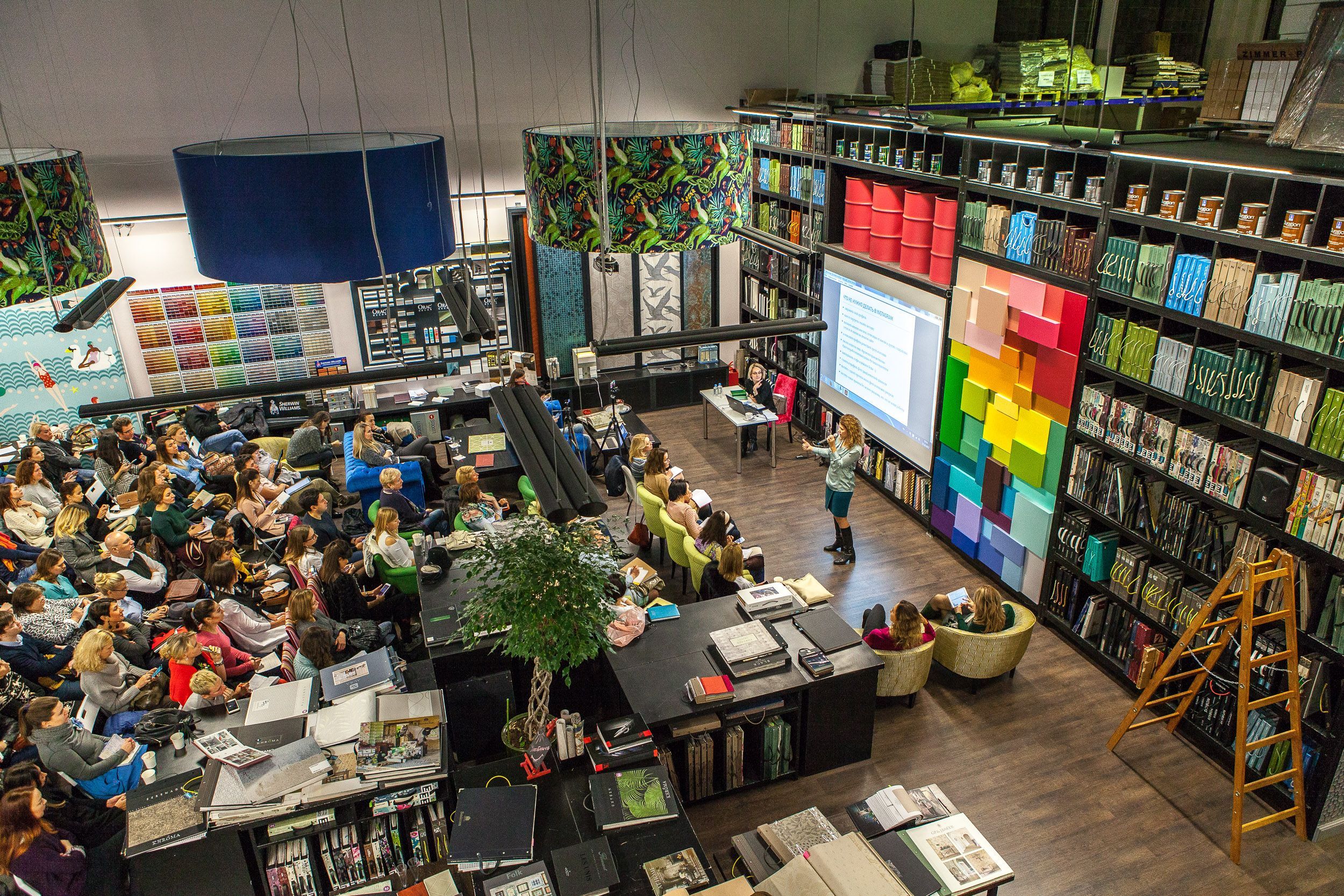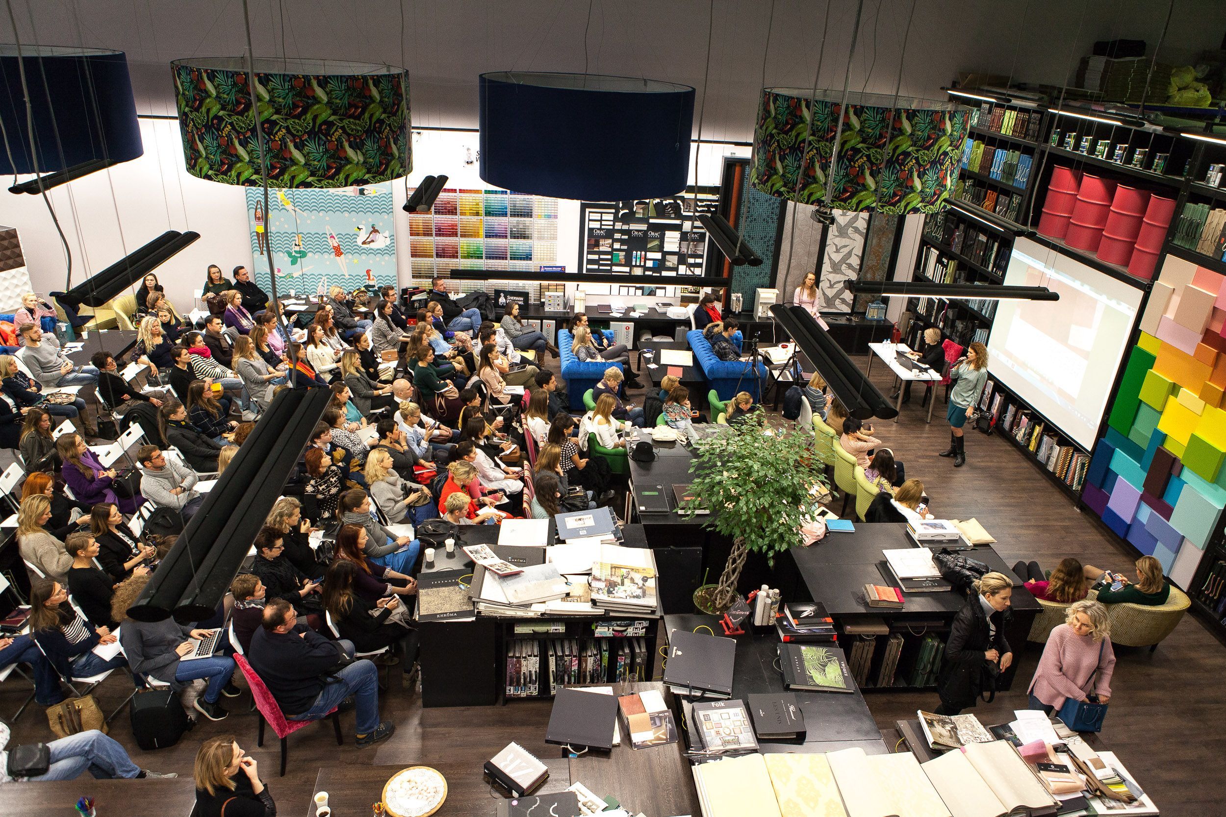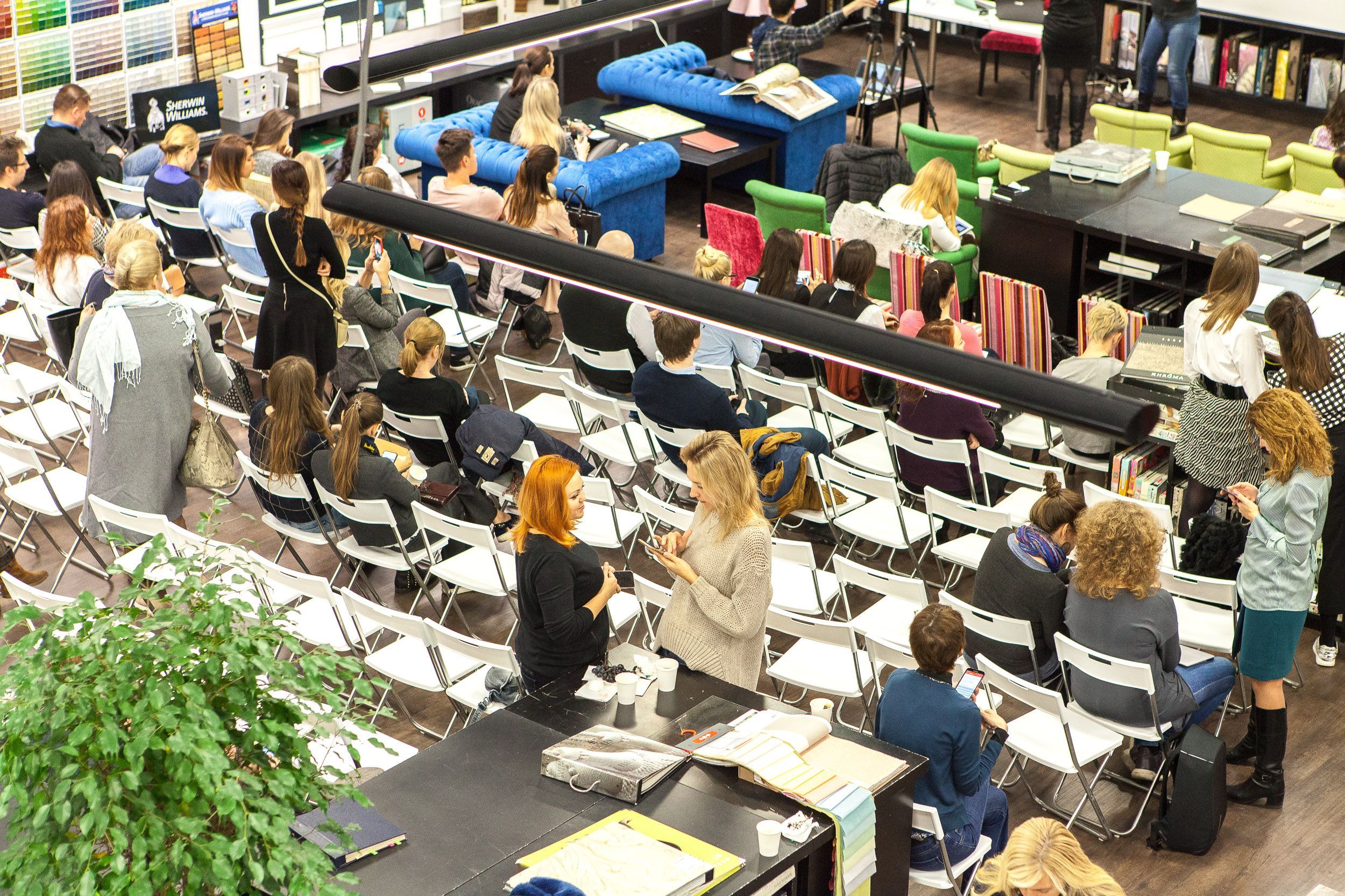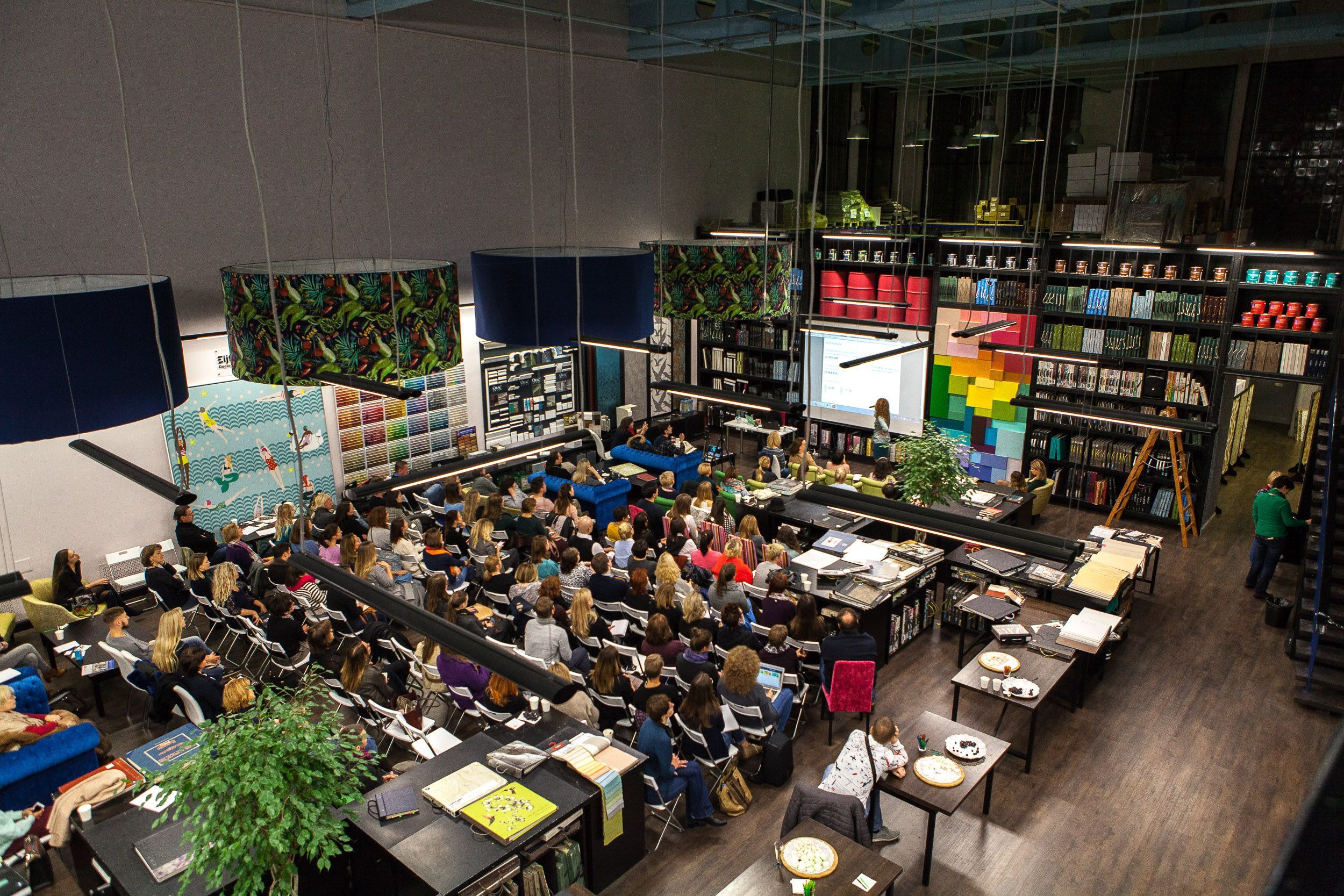 Шампанское, фрукты, встречи с коллегами и возможность посмотреть многочисленные новинки обоев и тканей в уютном зале Мануфактуры 5 превратили окончание лекции в приятную вечеринку. Спасибо всем гостям, и до новых встреч!