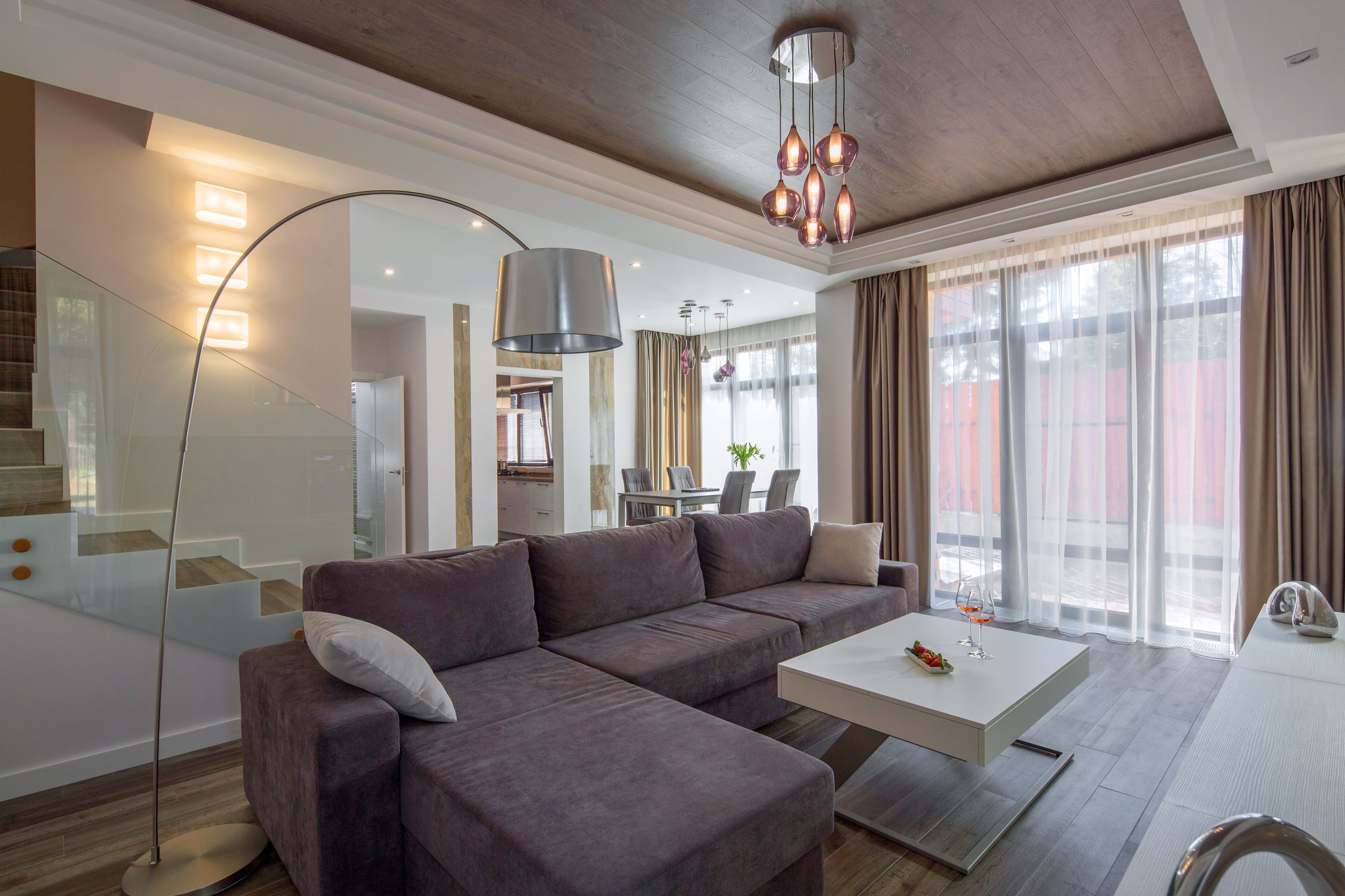 В данном случае нужно было обыграть многоуровневые потолки. По возможности я стараюсь их избегать, ведь показать высоту пространства можно более изящным способом. Например, подчеркнув ее карнизами. В этом проекте потолок диктовал некоторое «занижение» несущими балками. Чтобы скрыть их тяжеловесность, я продумала комбинацию из светодиодной подсветки, встроенных светильников и потолочных люстр. Это помогло создать разные сценарии освещения.