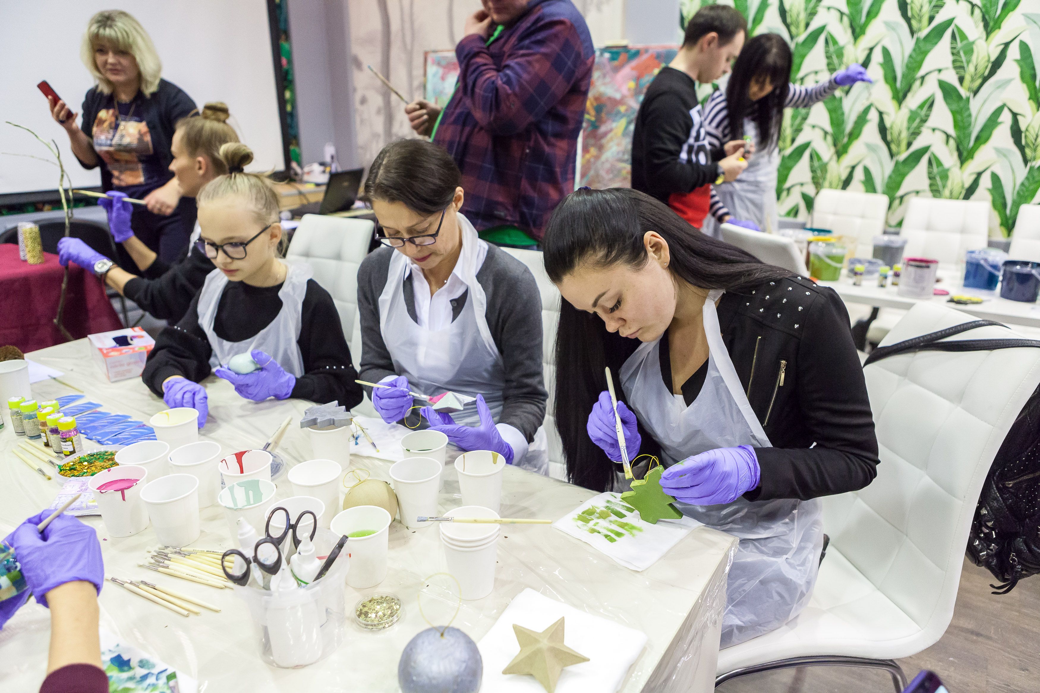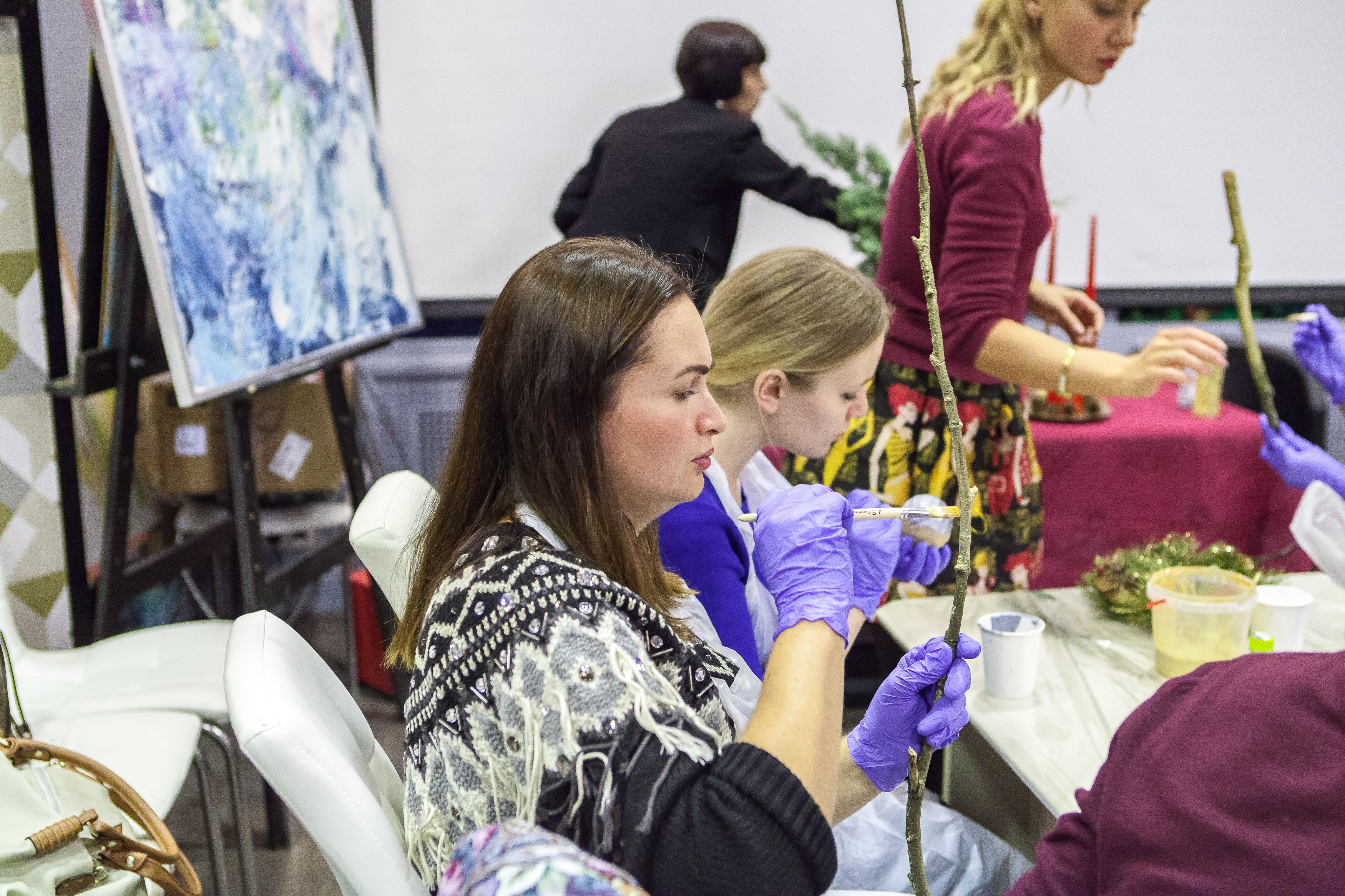 Специальная гостья нашего вечера — декоратор Татьяна Шавлак — провела креативный мастер-класс по созданию новогодних украшений, где каждый смог проявить фантазию и изготовить свой авторский декор с росписью.
