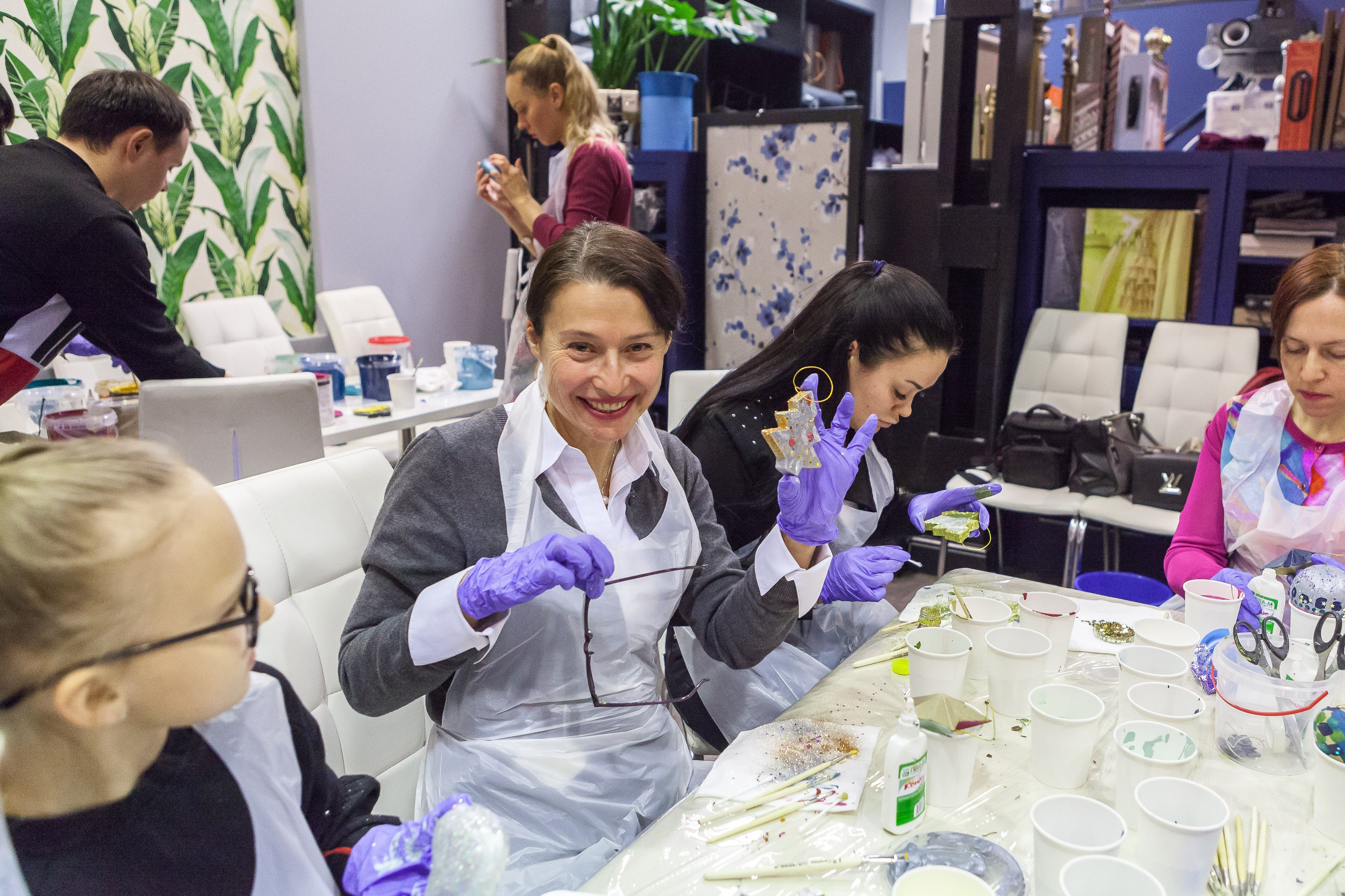 На заключительной встрече уходящего года участники познакомились со Школой дизайна 5+ и создавали авторские елочные украшения вместе с известным декоратором Татьяной Шавлак.