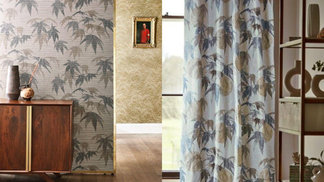 Живописные ветви маньчжурского клена представлены в теплых и холодных оттенках. Также доступна роскошная одноименная ткань с абстрактными хризантемами.