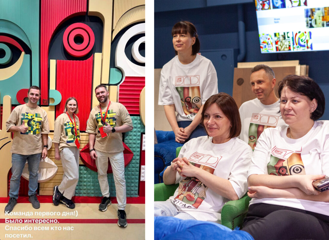 Проект показал не только дизайнерское умение, но и грамотную коммуникацию: Orac выпустил мерч — футболки с изображениями из фотозоны, а Ампир Декор подготовил собственную линию футболок с изображением большого лица со стенда.