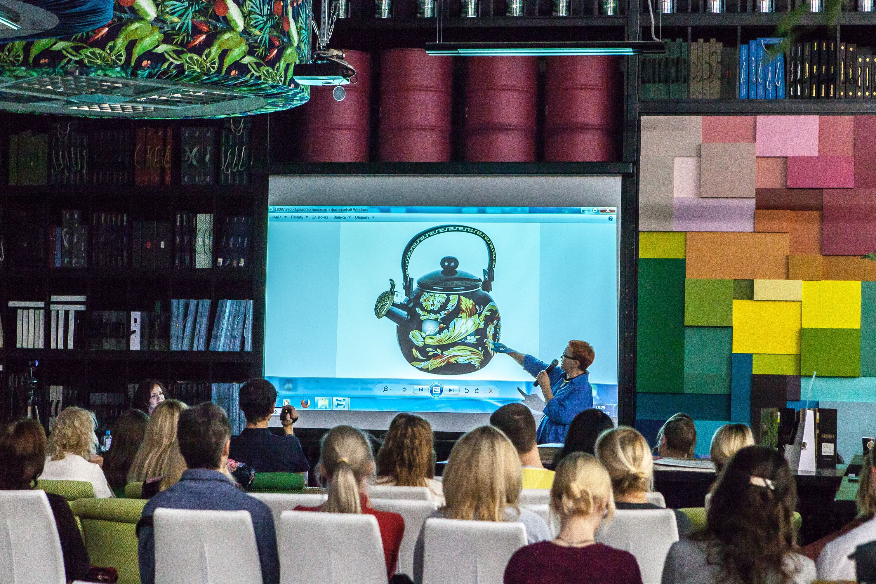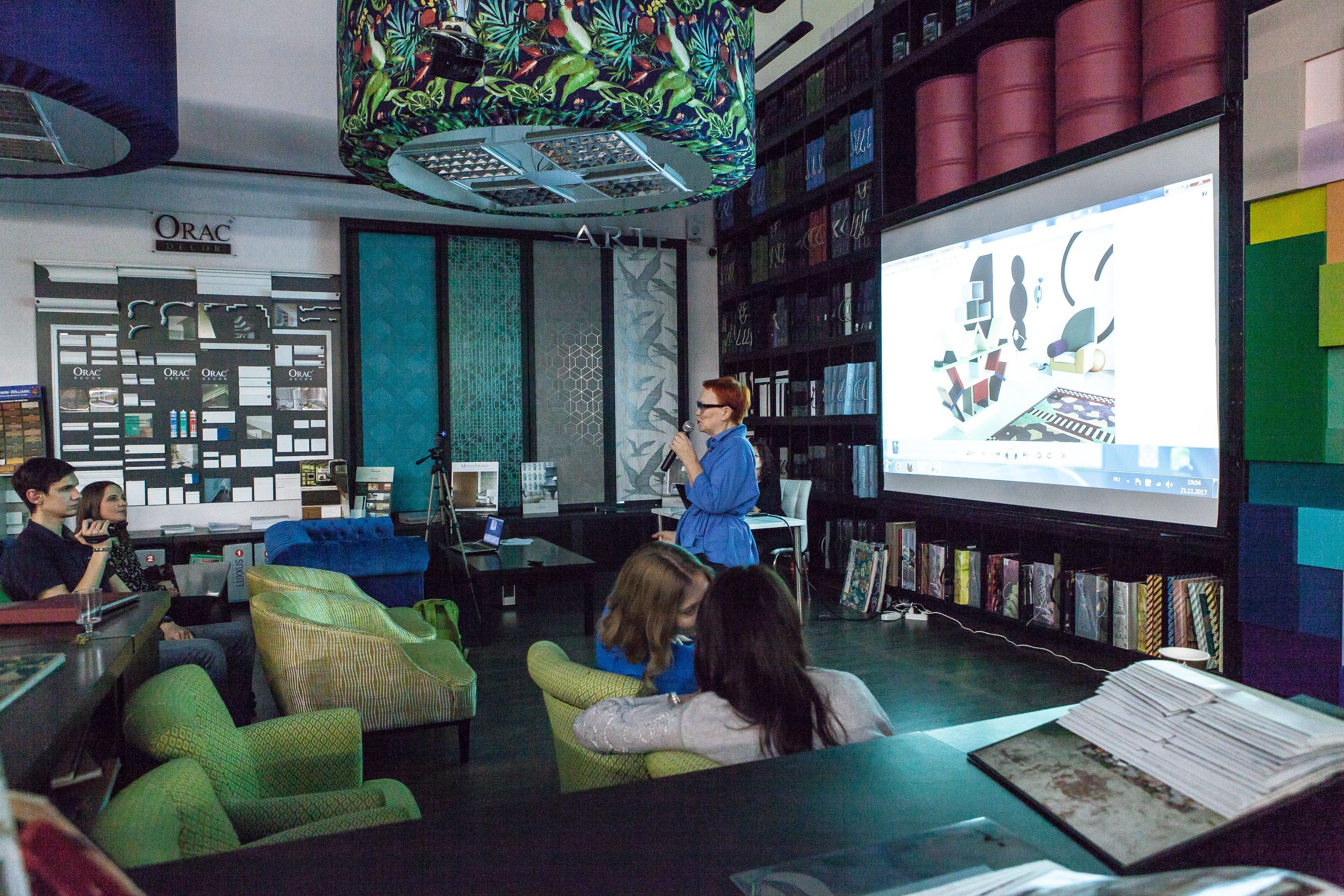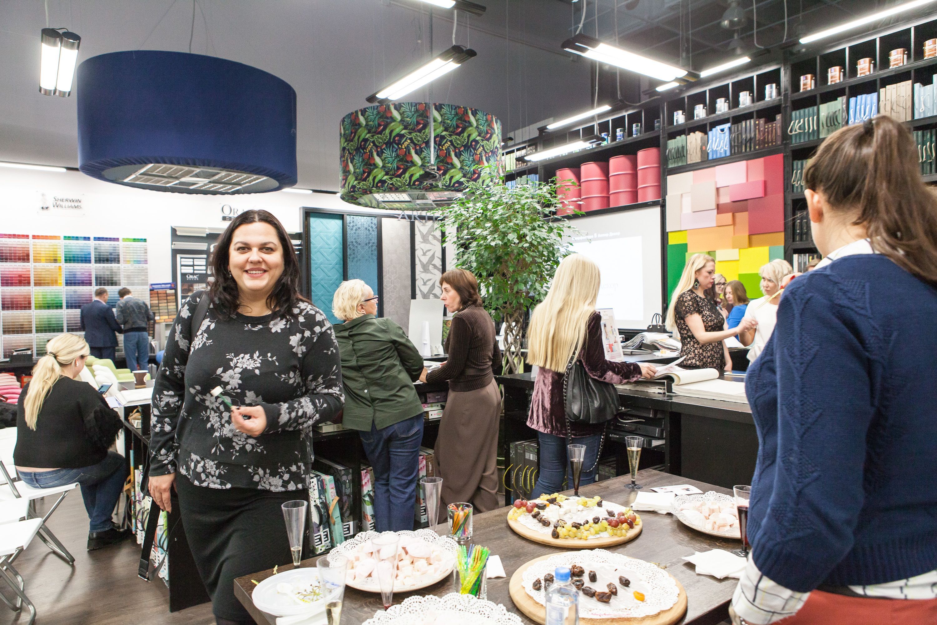 Поздравить компанию собрались коллеги из Ампир Декор Казань, дизайнеры Москвы, представители компаний Decaro, Kado, Sherwin-Williams, Nobilis, Orac Decor. Блистательная Елена Теплицкая прочитала гостям лекцию «Китч — как с этим работать, бороться или играть?»