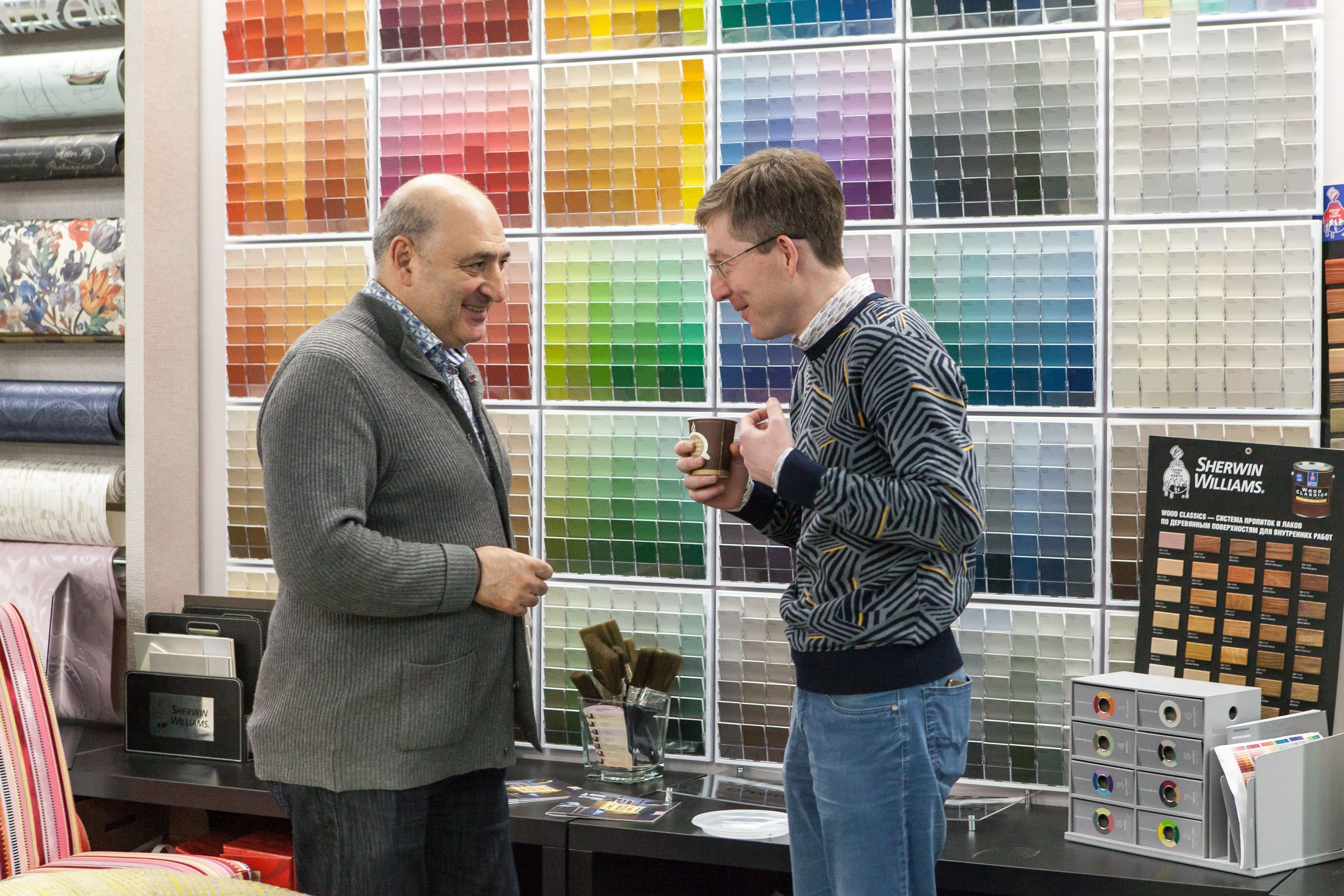 Недавно Ампир Декор поставил новую планку: ассортимент компании расширился американской краской Sherwin-Williams, гипсовыми панелями и декоративными штукатурками, а к широкому спектру услуг по текстильному оформлению добавилась обивка мебели.